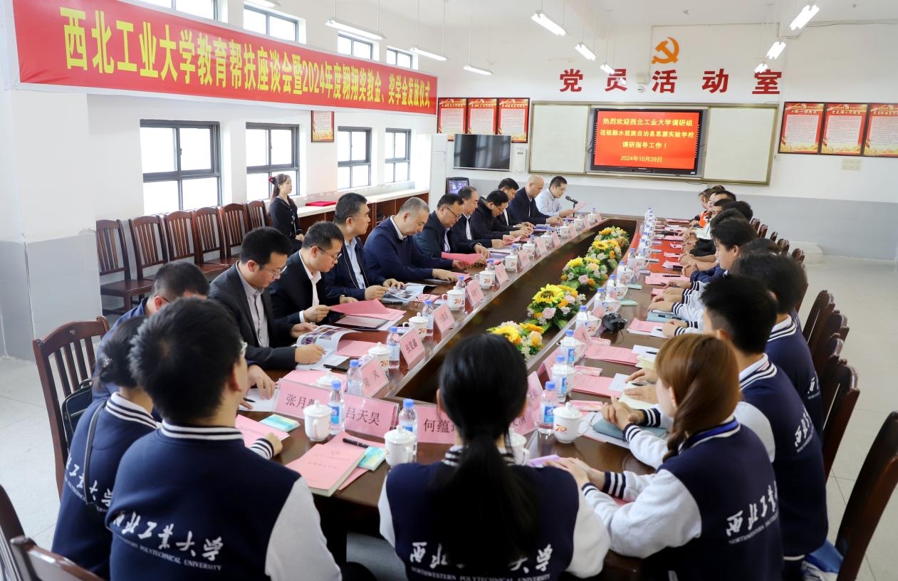在随后召开的教育帮扶座谈会上,举行了2024年度“翱翔奖教金、奖学金”发放仪式。为了表彰扎根苗山、潜心育人的优秀教师和刻苦学习、奋进成才的学生,学校在融水县设立“翱翔奖教金”“翱翔奖学金”。本年度共为融水县发放40万元,表彰了1322名师生。