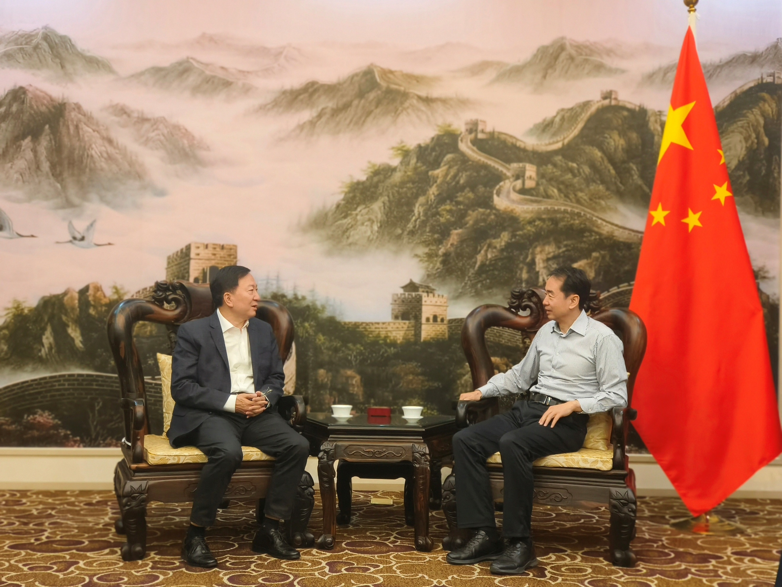 在越期间,代表团还拜会了中华人民共和国驻越南大使馆,李言荣与何炜大使进行了会谈。何炜简要回顾了中越两国关系的悠久历史与深厚底蕴,强调了双方在政治、经济和文化等领域的紧密合作。