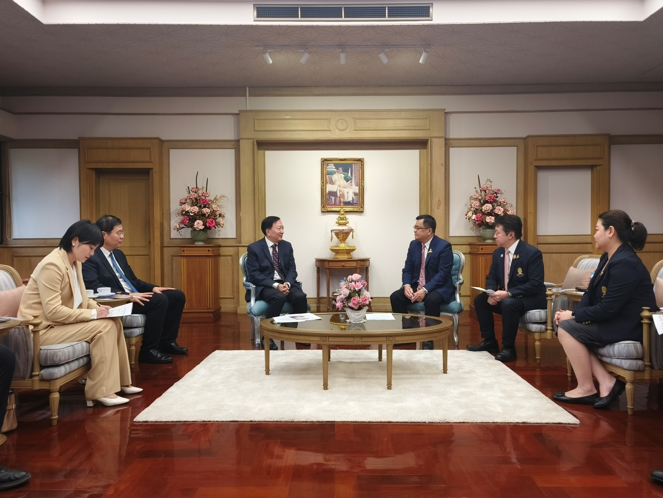 12日上午,在泰国朱拉隆功大学,李言荣与校长威勒特·普里瓦特进行了会谈。威勒特·普里瓦特介绍了朱拉隆功大学在学术研究和国际合作方面的优势。双方就学校合作、学生交流项目等进行了讨论,并探讨共同举办联合国国际组织合作项目等事宜。