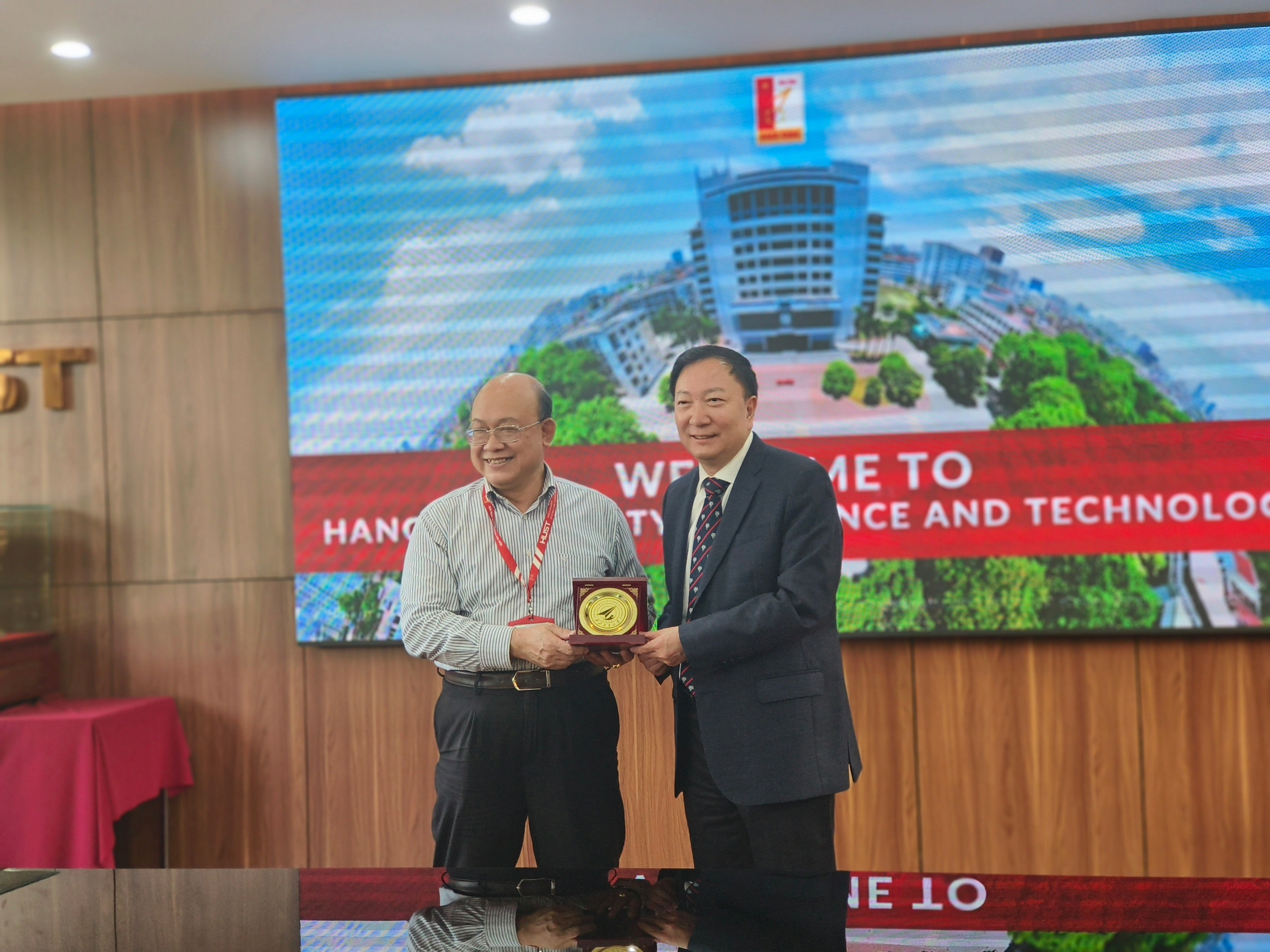 11日下午,在越南河内理工大学,李言荣与校长黄决胜会谈。双方均表示希望加强两校间交流互访,为学生提供更多学习机会。