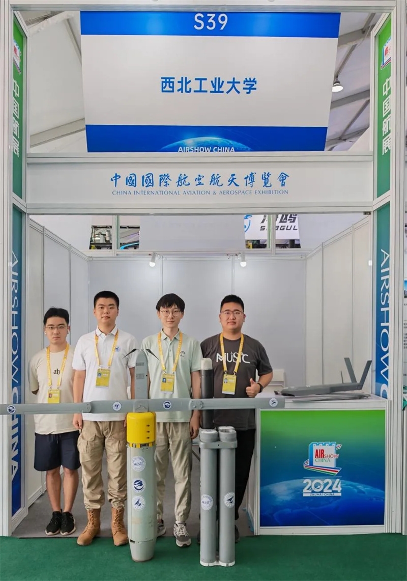 taptap点点体育展台展出的是学校无人系统技术研究院昌敏教授项目组自主研制的一款跨海空变体管射折叠翼无人机--“游隼”。