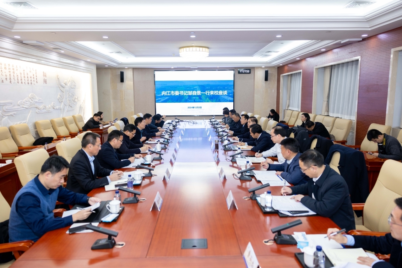 李言荣对邹自景一行表示欢迎,并简要介绍了学校的办学特点。他说,内江历史文化悠久,区位条件优越,产业基础扎实,经济社会发展势头好。希望双方继续在科技、人才等方面深化校地合作,特别是在新材料、电子信息、装备制造等领域开展协同科研。