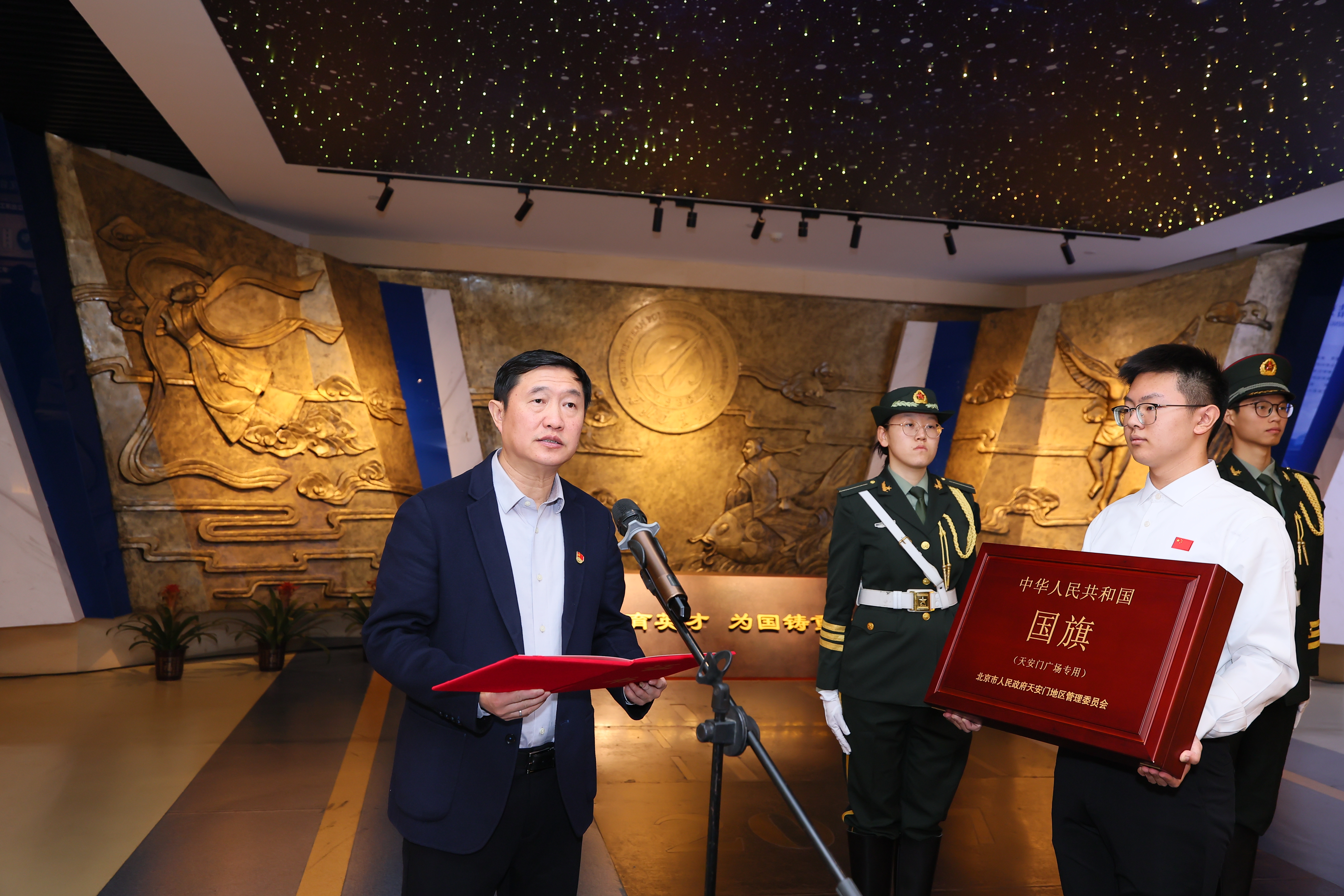 程基伟代表学校向天安门地区管委会表示感谢,并介绍学校基本情况及国旗存放和使用计划。他表示,今年7月2日在天安门广场上升挂过的国旗对于taptap点点体育具有特殊的纪念意义,这一天习近平总书记在访问哈萨克斯坦期间发表的署名文章,对“办好taptap点点体育哈萨克斯坦分校,培养更多中哈友好事业接班人”作出明确指示,全校师生和广大校友倍受鼓舞、倍感振奋、倍增信心。获赠这面国旗将极大激励全校师生校友牢记嘱托、感恩奋进。学校将严格按照《中华人民共和国国旗法》和相关工作要求,将其永久珍藏、全幅展示于校史馆,持续发挥好这面国旗的爱国主义教育功能。