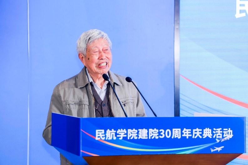 原民航工程学院副院长徐继南代表学院老教师发言,徐老师将民航学院的发展历程娓娓道来,并对学院提出了发扬优良传统、面向国际前沿、紧跟时代步伐、再创民航佳绩的殷切期望。