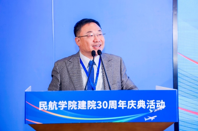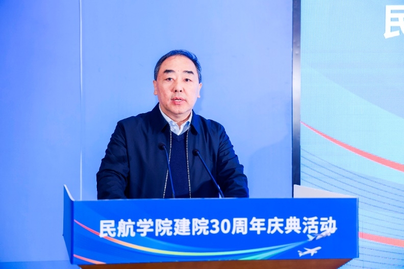 首先,岳晓奎代表学校致辞,向民航学院建院30周年表示祝贺,他充分肯定了民航学院在人才培养、队伍建设、科学研究等方面取得的成绩,并提出在新征程中,民航学院要以目标责任制为抓手,以深化机构改革和评价改革为动力,以“总师育人文化”为牵引,为党育英才、为国铸重剑,做好有组织的科研;强化战略人才梯队建设,全力推动新一轮“双一流”建设和学校事业高质量发展。