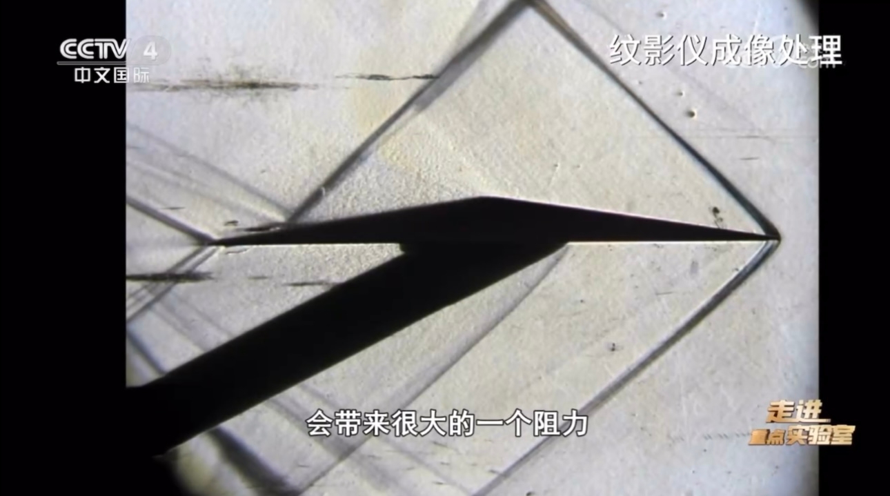 韩忠华介绍道到:“超声速运动的物体头部产生了两道,上下两道分别有一道激波。(气流)从前方这边流过来的时候,开始它不知道有物体存在,然后突然感到物体存在的时候,这些空气就堆积在一起,形成这么一道激波。激波是(空气)强烈的压缩,会带来很大的阻力。”