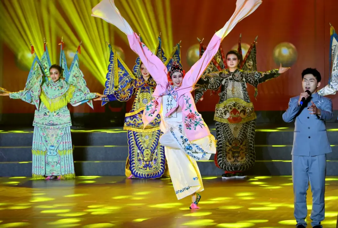 大学生艺术团、留学生代表共同演绎歌舞《杨门女将》,铿锵有力的歌声诉说着巾帼不让须眉的豪情壮志。