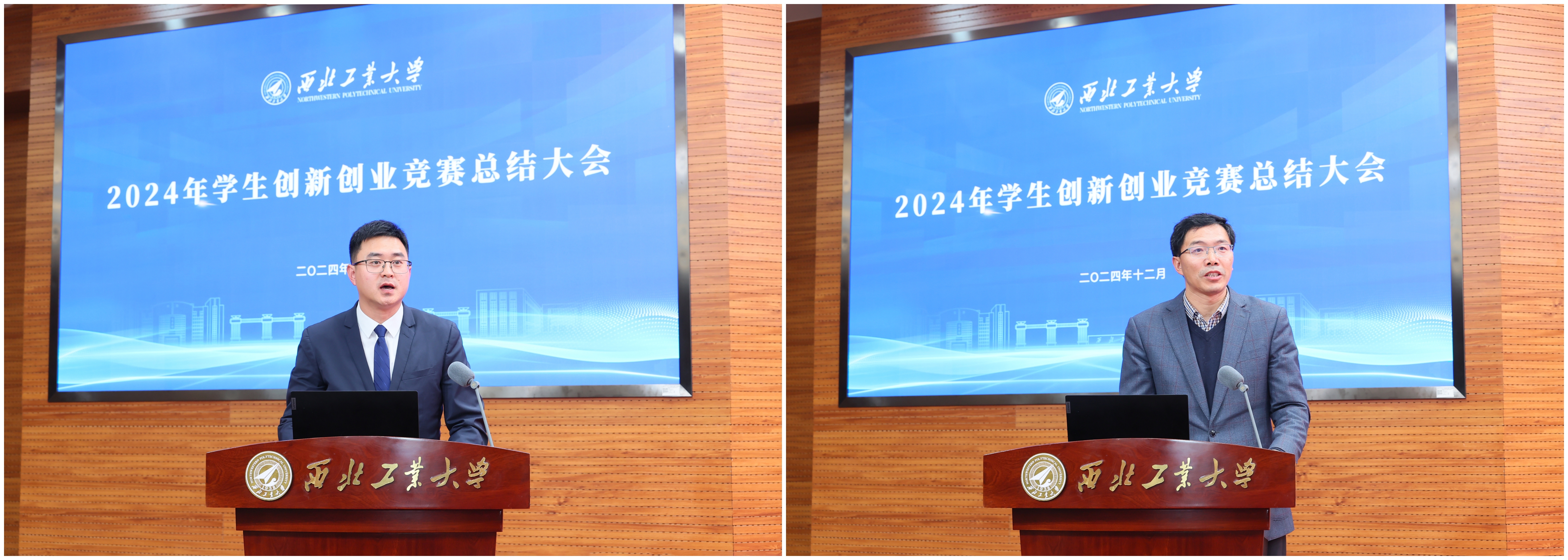 宋保维代表学校、代表李言荣书记,向同学们在大赛中取得的优异成绩表示热烈祝贺,向各位指导教师和参与到活动各个环节的工作人员表示衷心感谢。他指出,“高质量入学率、高比例深造率、高平台就业率、高水准获奖率”是检验一所高校人才自主培养质量的关键指标,“三大赛”已成为在校生培养质量的重要评价要素之一。本年度的赛事中,西工大学子展示了自己的风采与实力,取得了来之不易的成绩,为学校赢得了荣誉,用一个字总结就是——“行”,具体体现在三个方面:一是组织备赛有力度。全校各单位将大赛作为人才培养工作的核心指标,从项目遴选到培育、打磨,师生紧密配合、提前谋划、全力备赛。二是师生参与有广度。本年度师生参赛积极性得到激发,全校通力合作,每一位员工都将“三大赛”作为工作的重要内容,不同专业参赛学生与指导教师通力合作完成多个领域项目。三是实践育人有成效。每一位参赛同学都在大赛过程中不断磨炼“三种精神”——科研精神、团队精神、奋斗精神,持续提升“三种能力”——解决问题能力、文字写作能力、语言表达能力。