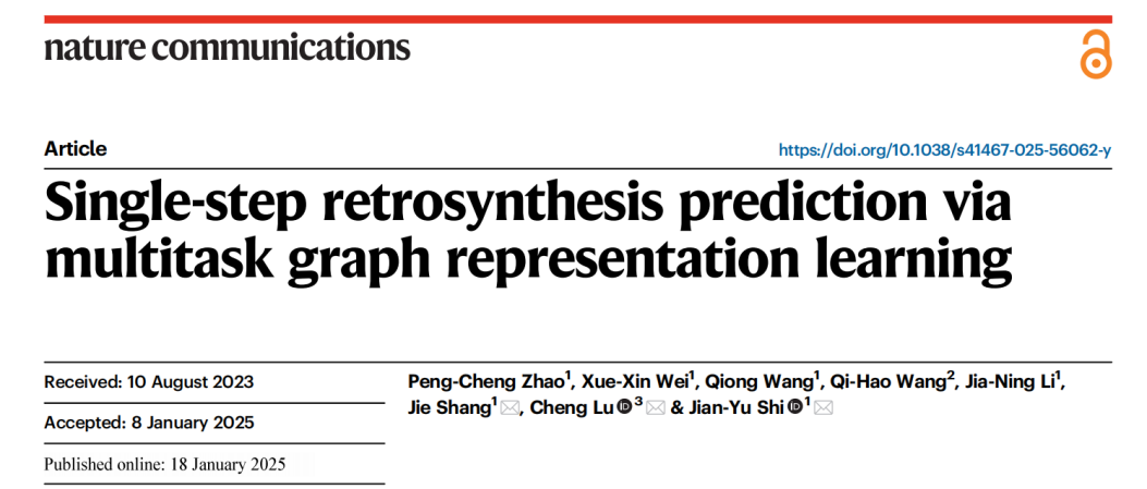 Zhao, PC., Wei, XX., Wang, Q. et al. Single-step retrosynthesis prediction via multitask graph representation learning. Nat Commun 16, 814 (2025).https://doi.org/10.1038/s41467-025-56062-y.