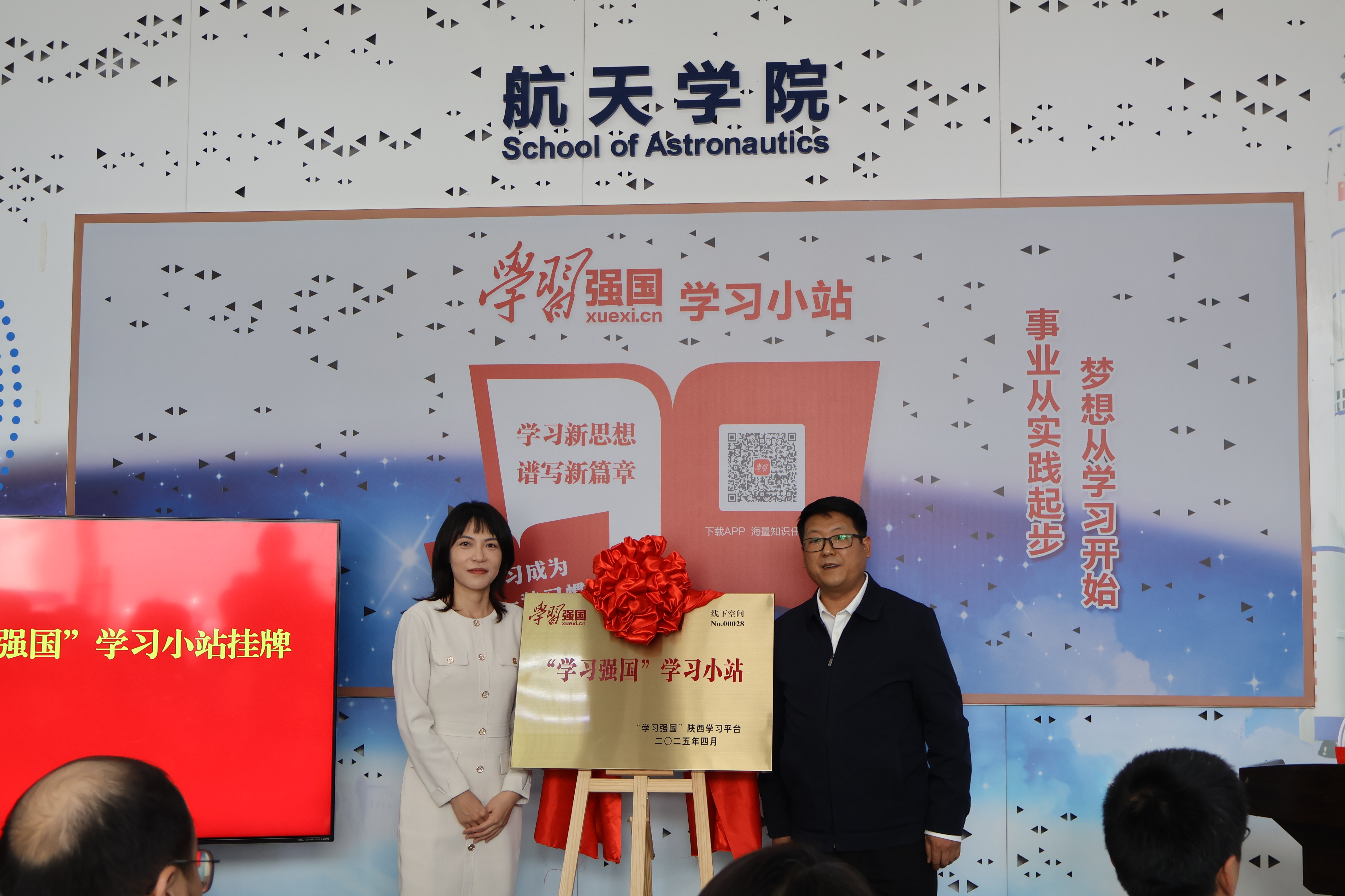 4月23日下午,航天学院在友谊校区举行“学习强国”学习小站启用仪式暨陈士橹院士先进事迹宣讲活动。中共陕西省委讲师团办公室主任孙锋利与学院党委书记黄越共同为小站授牌,校党委宣传部、组织部相关负责同志为优秀学习宣传员颁发聘书。陈士橹院士先进事迹宣讲环节,宣讲团以“一个甲子的坚守”为主题,通过科研手稿、教学笔记与口述历史,生动还原其奋斗历程,激励青年学子传承先生的学术精神。