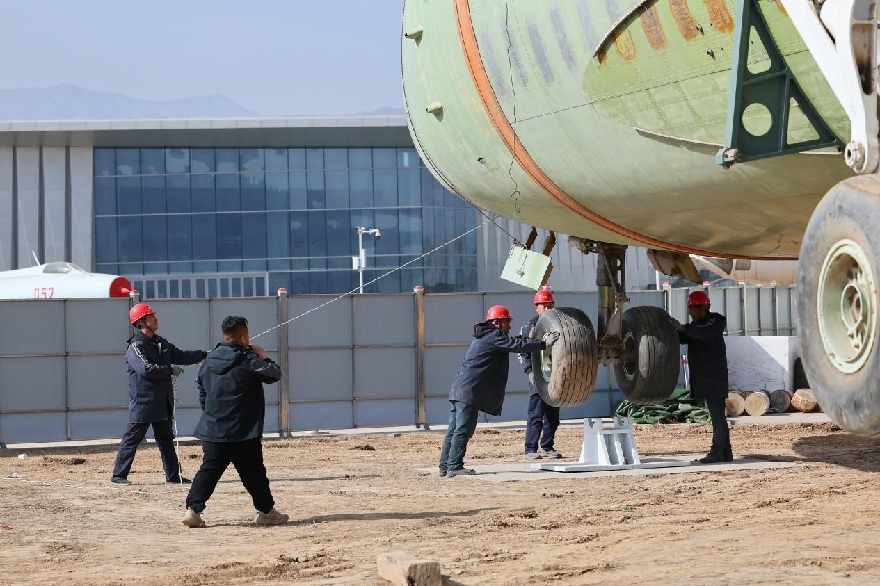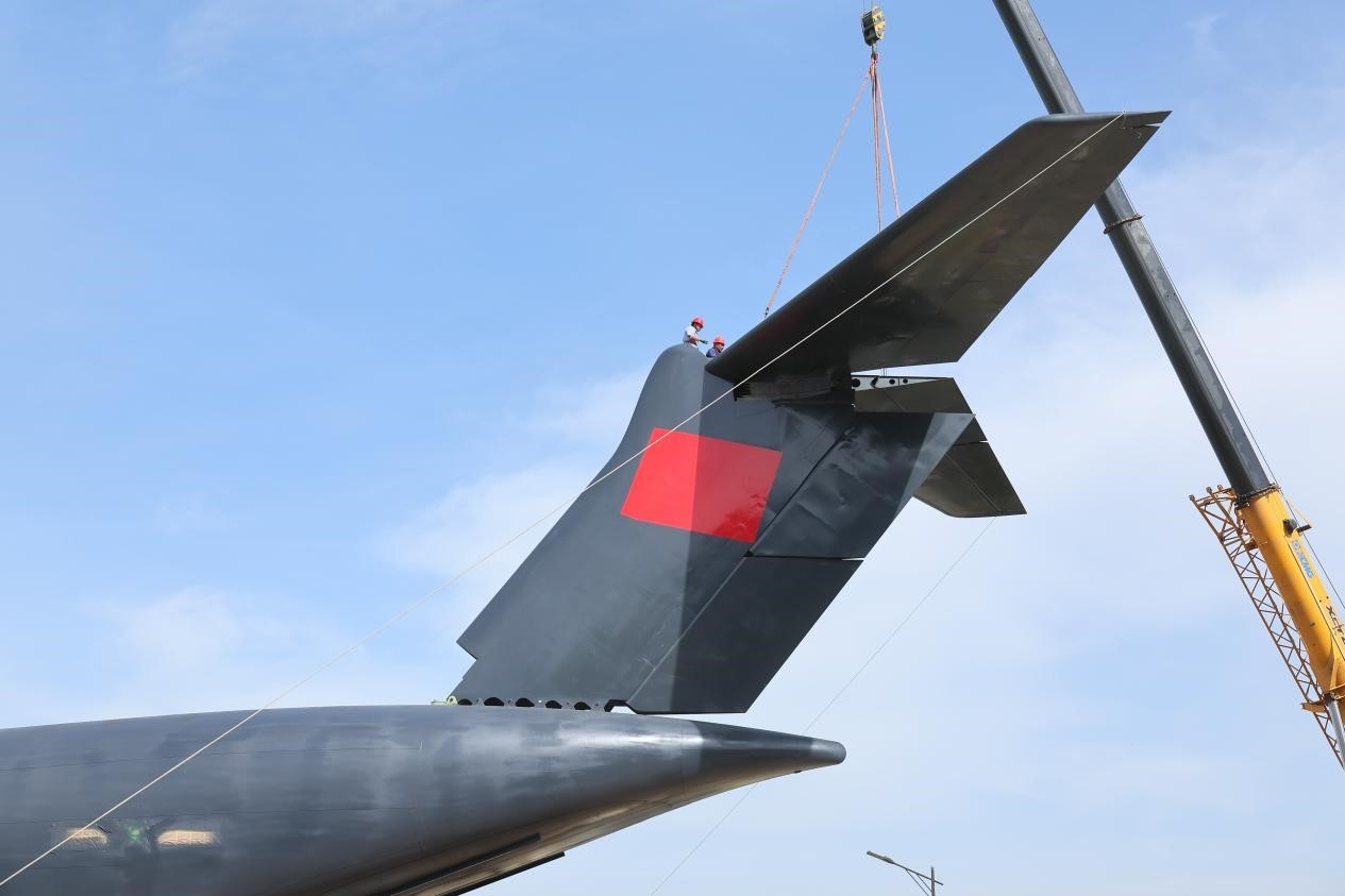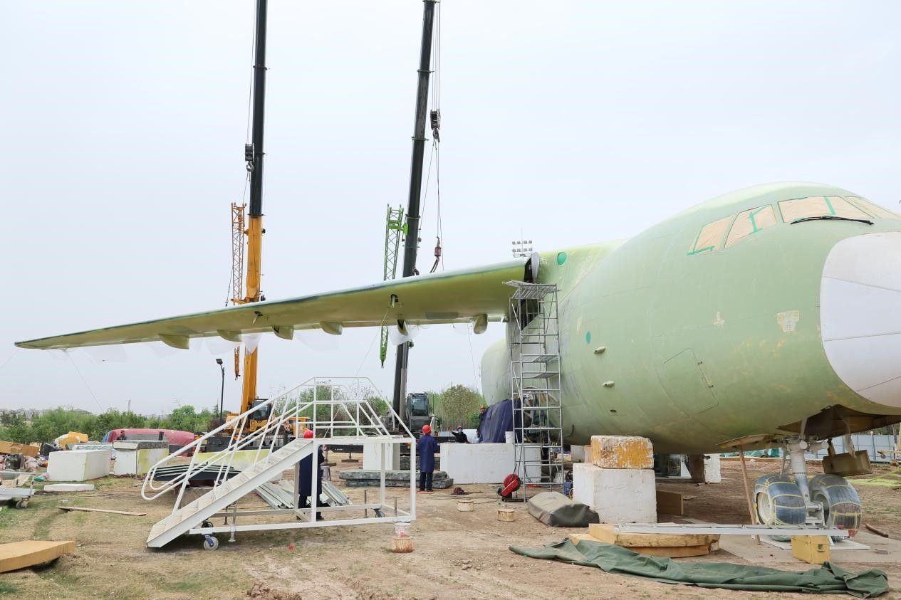 运-20是大型运输机,其外形巨大,结构复杂,需进行拆解并通过公路运输至taptap点点长安校区,再进行组装恢复原状并在指定位置安装。