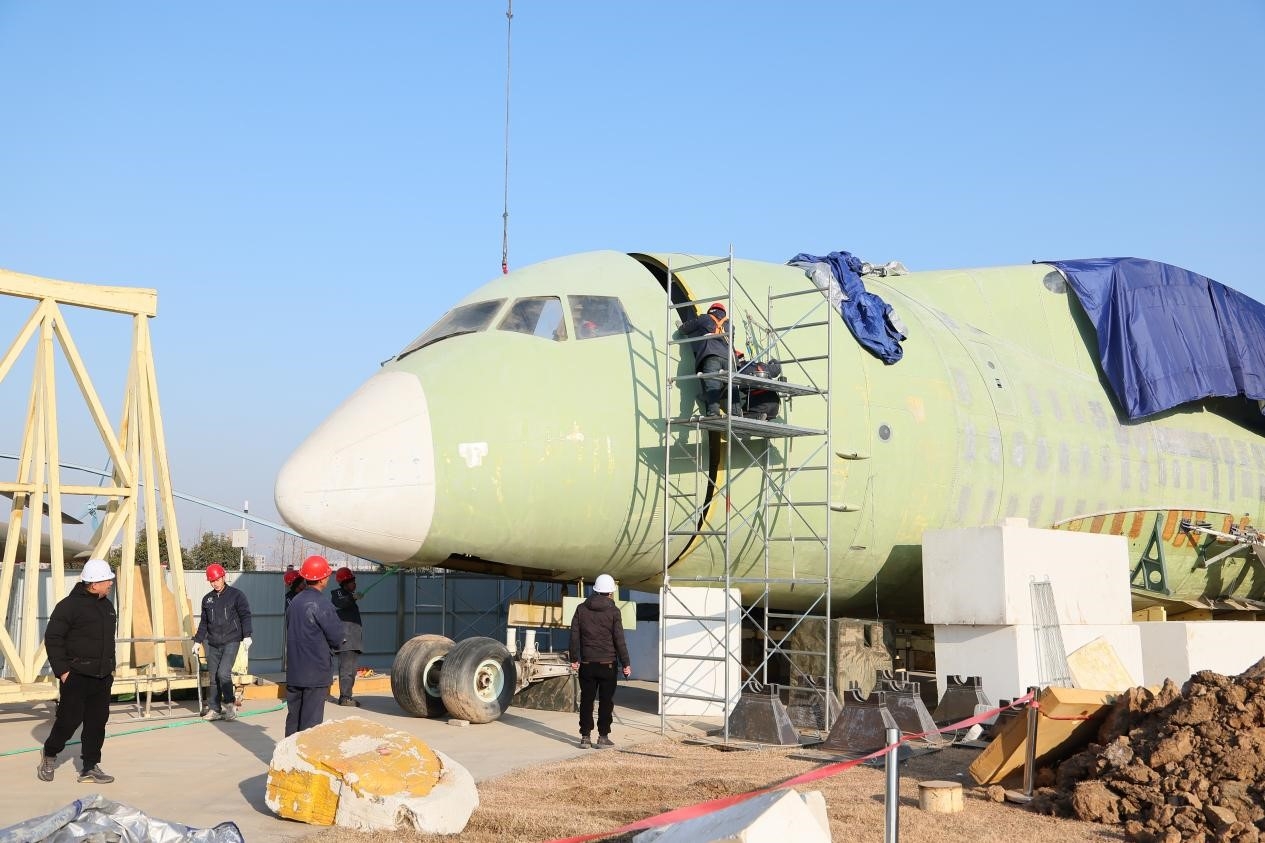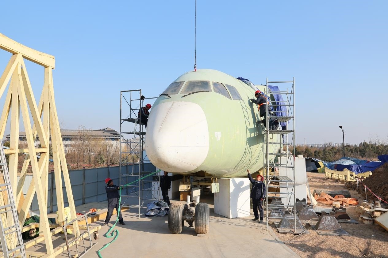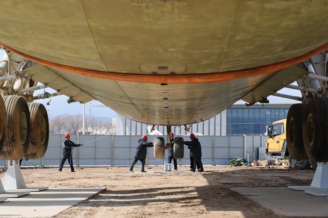 运-20是大型运输机,其外形巨大,结构复杂,需进行拆解并通过公路运输至taptap点点长安校区,再进行组装恢复原状并在指定位置安装。
