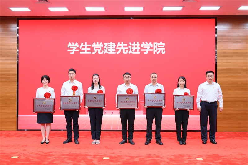 校长助理王宇波颁发“学生党建先进学院”奖牌