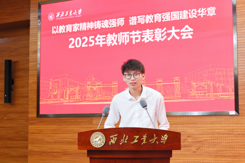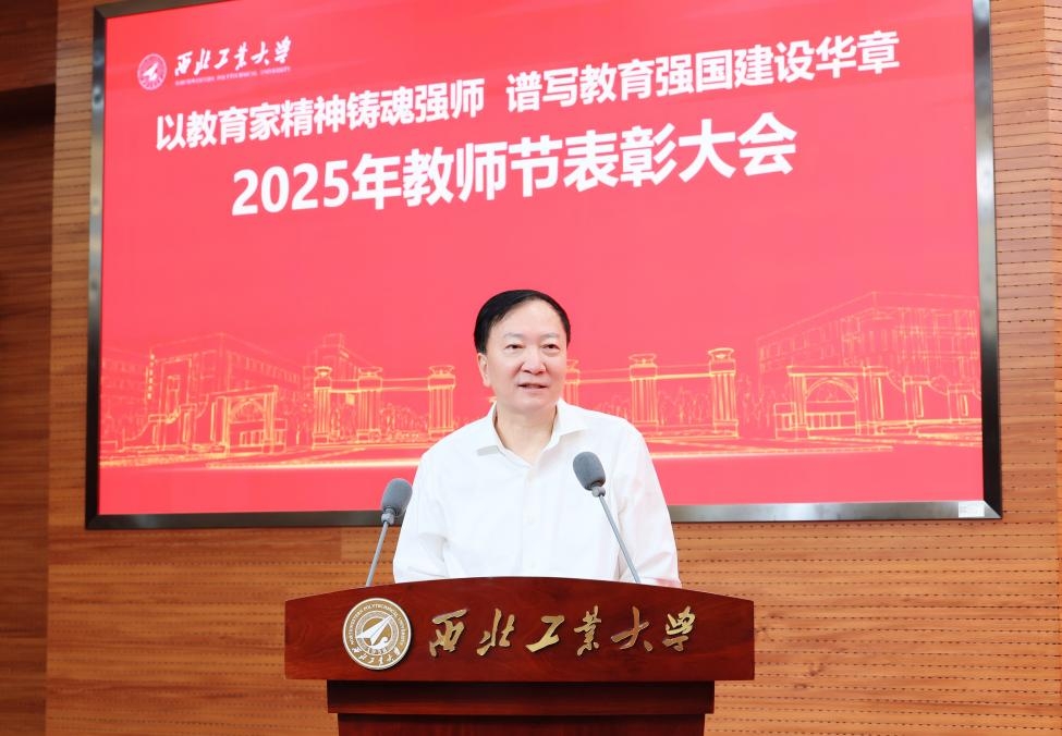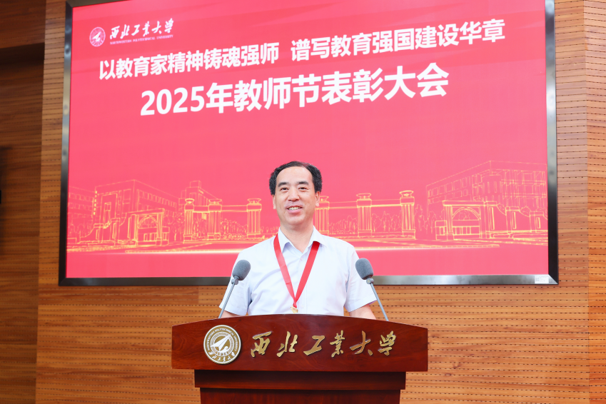李言荣代表学校和在中央党校学习的宋保维校长,向获得表彰的先进集体和先进个人表示祝贺,向全体教师和教育工作者致以节日的问候!他说,9月8日,习近平总书记给全国特岗教师代表回信,强调教师要坚守教育初心,不断提高教书育人本领,努力培养出更多德智体美劳全面发展的社会主义建设者和接班人。西工大的老师们要大力弘扬教育家精神,全面落实立德树人根本任务,坚持为党育人、为国育才,为教育强国建设贡献更大力量。