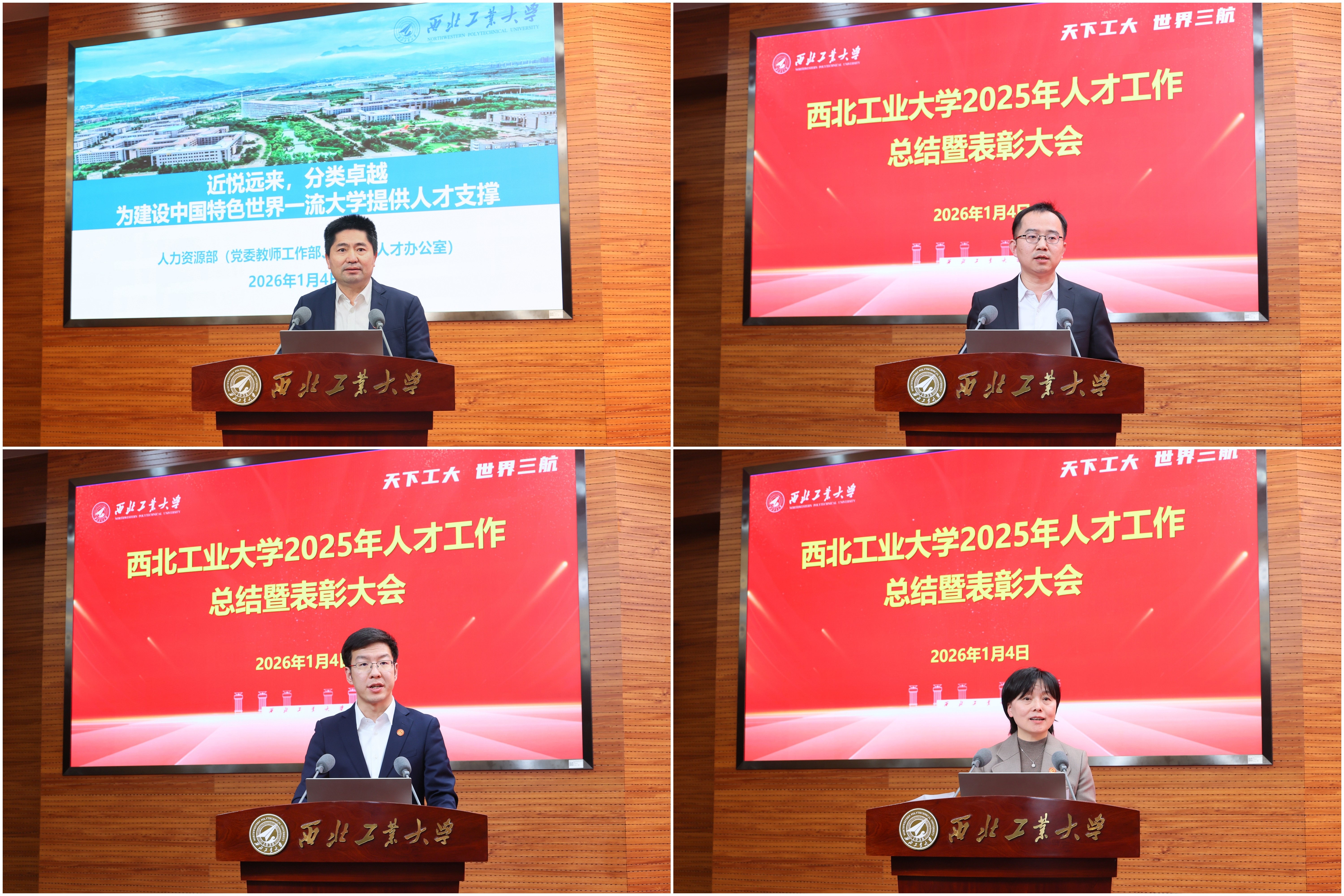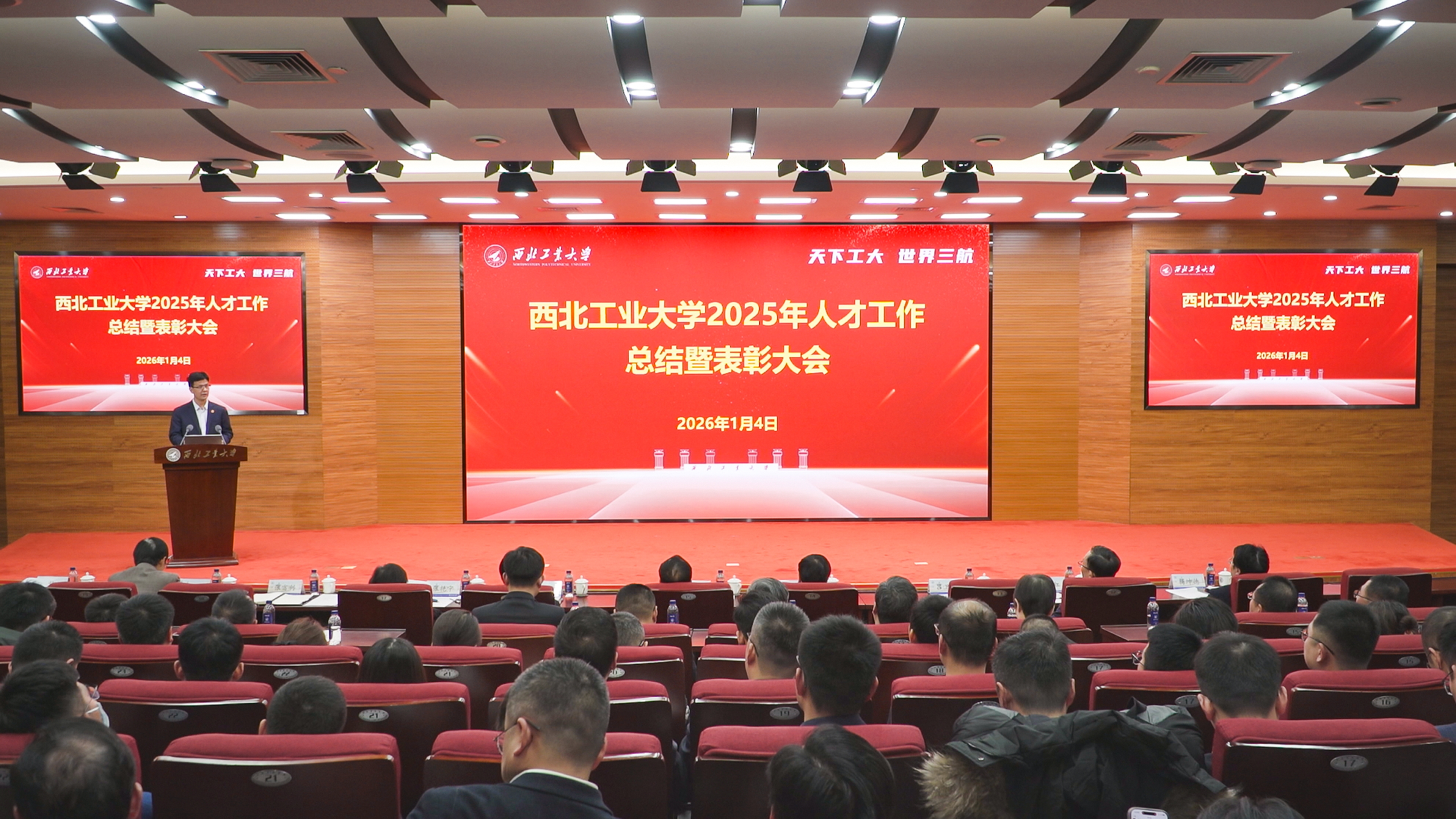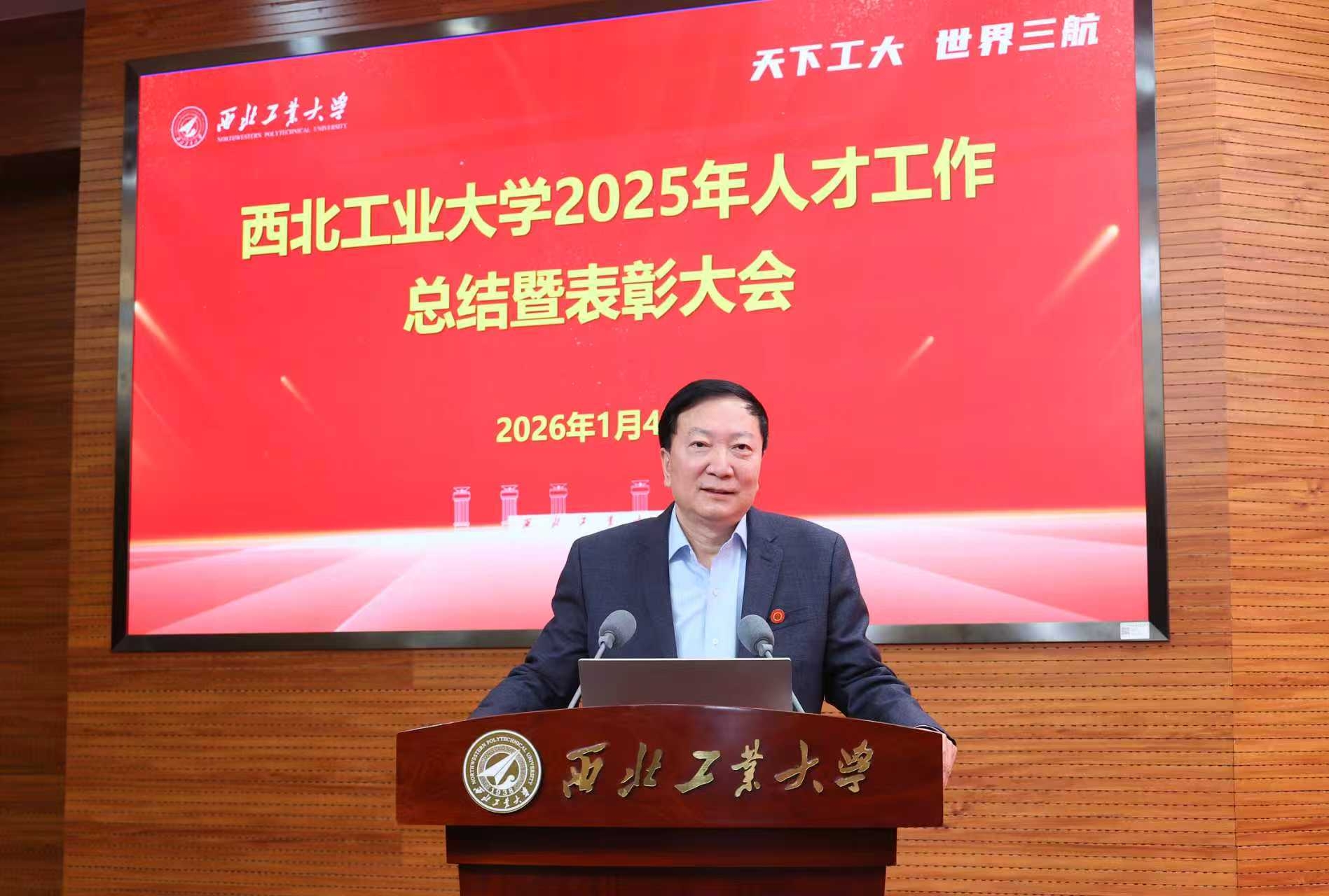 李言荣代表学校对2025年度新晋各类国家级人才表示祝贺,对为人才工作作出贡献的学院、部门、老师们表示感谢。他说,2025年是西工大高位运行、高速发展的第三个年头,三年来,学校国家级人才总数翻了一番以上,国家级人才在专任教师中占比超过了20%。2025年,学校新增2位院士、133位各类国家级人才,这是学校高位运行的重要标志,成绩来之不易,其背后是每一位参与其中的西工大人的辛勤努力,如果说取得这样的成绩有什么“诀窍”,那就是其背后所下的“功夫”。
