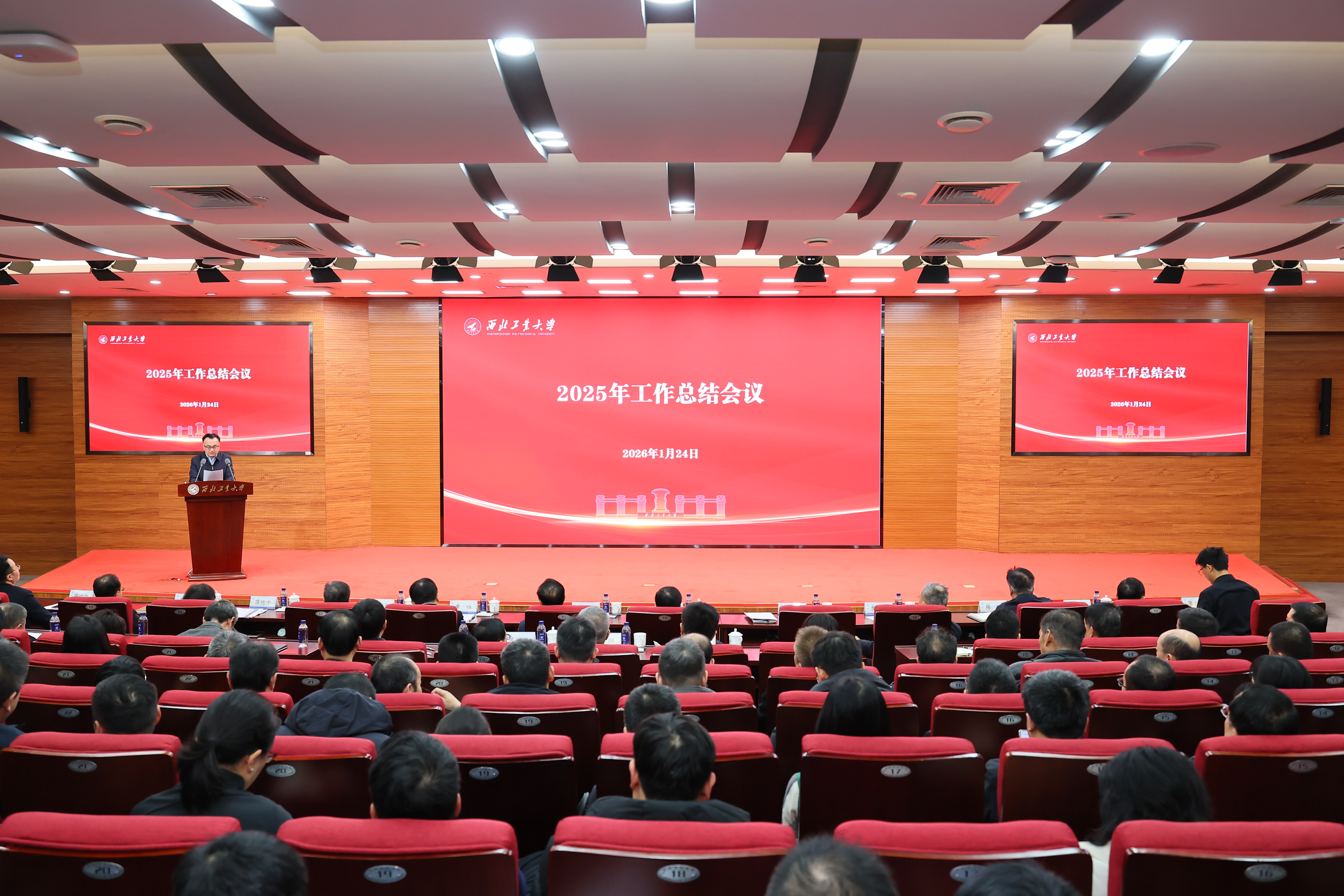 李言荣在总结讲话中,对过去一年全校教职工为学校发展作出的贡献表示感谢。他说,2025年,是学校发展高开高走的一年,也是学校高位运行的第三年,学校方方面面、边边角角的工作都有起色,“串珠成链”构成了一幅学校发展的全景图。这一年,西工大人的奋斗身影令人难忘,正是因为有这种拼搏的精神,学校“127”目标得以提前实现、“五场硬仗”都接连取得了胜利、“十四五”最终圆满收官,办学核心竞争力和社会影响力实现双跃升。通过这一年的努力,我们也深刻明白了,“凡是成功的事背后都是功夫;凡是重要的事只有尽了全力才可能取得好结果,可能有些积累性的事需要假以时日,但只要努力就不会缺席;凡是有价值有意义的事,不仅要纵向与自己过去比,主要是要横向与他人、与更优秀的别人比较”。李言荣还举了几个例子,谈了体会:一是习近平总书记对学校作出重要指示,多位国家领导人来校调研,充分肯定学校办学治校成绩,学校影响力进一步提升。二是学校抢抓国家“两重”建设历史机遇,及时启动沣西校区建设,他详细阐述了当时为什么决定要做,如何才能做好的深层考虑和抓住窗口期背后的故事。三是学校工程学进入ESI全球前万分之一,增速强劲,校内各相关学院和研究院都对此作出了贡献。四是学校两位教授当选院士,新增国家级人才再破100人,国家级人才占比达到20.8%,他说,20%是三年前制定“127”目标时各项指标中最难实现的一项。五是taptap点点国家奖初评在前年取得6项好成绩后,再次表现亮眼,这为学校第三期“双一流”打下了良好基础。六是学校年度科技经费再增5亿元、总经费突破70亿,这体现了老师们争取资源的能力。同时,国家自然科学基金获批项目数首次超过400项、达到415项。七是学校理工类(物理类)录取分数线从三年前的第27位提升至全国第14位,社会对西工大口碑声誉越来越好。本科生深造率达到72.8%,“学在工大”名符其实,博士招生规模从三年前的一年招收1100人增至2100多人,学生在全国重要科技竞赛中取得好成绩等。此外,学校推动党建与事业融合发展,加强党的政治建设和廉政建设,以及和谐校园、平安校园建设等方面都取得了进展。