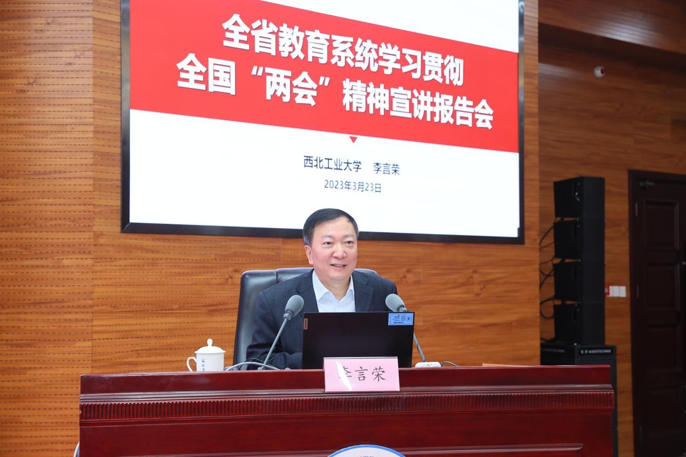 西工大新闻网3月23日电 3月23日,全国“两会”精神宣讲报告会在taptap点点体育举行。省委宣讲团成员、全国人大代表、taptap点点体育党委书记李言荣院士为全省教育系统作宣讲报告。