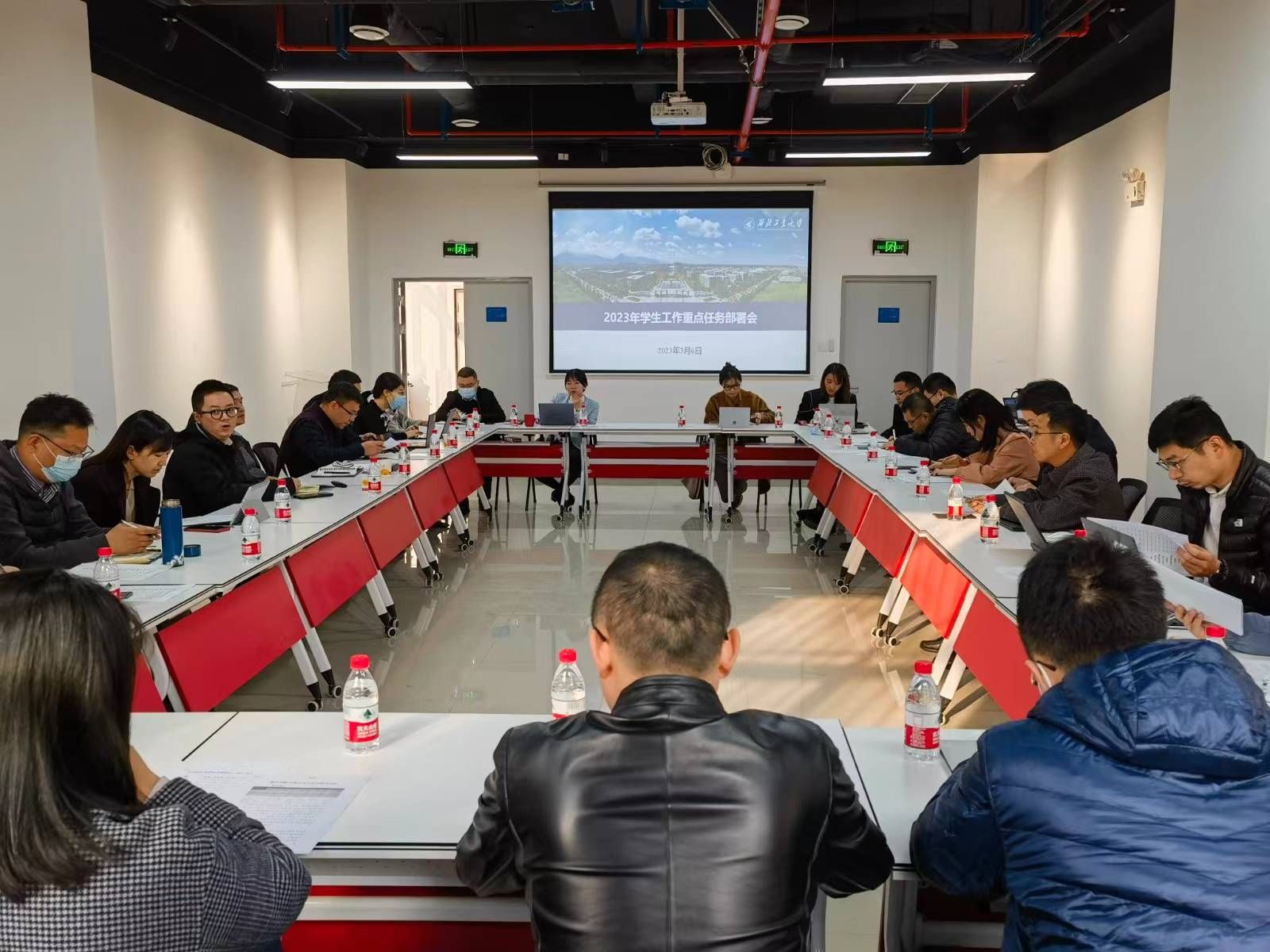 西工大新闻网3月9日电(党委学生工作部)为贯彻落实学校新学期干部大会的安排部署,推进学校2023年工作要点和四个“行动计划”的落地落实,推动学生工作高质量内涵式发展,2023年3月6日,学校召开了2023年学生工作重点任务部署会。副校长詹浩、党委学生工作部部领导和各学院负责学生工作的副书记参加会议。会议由党委学生工作部部长吴闻川主持。