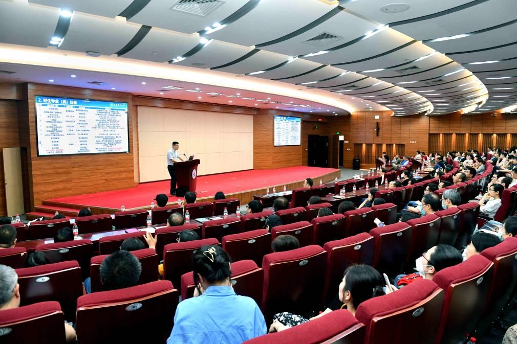 6月10日,本科招生宣传动员培训会采取线上+线下结合模式,教务处招生办公室对学校2023年本科招生政策的变化、宣传方案、志愿填报、相关注意事项等方面作出详细解读,副校长杨益新作动员讲话。会议的召开为全校各学院招生队伍全面深入准确了解并掌握学校招生政策、指导考生填报志愿等提供了重要基础,标志着2023年集中咨询和志愿指导阶段正式拉开序幕。