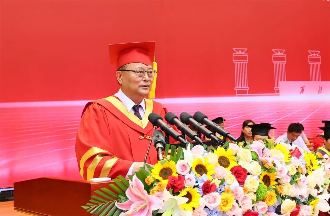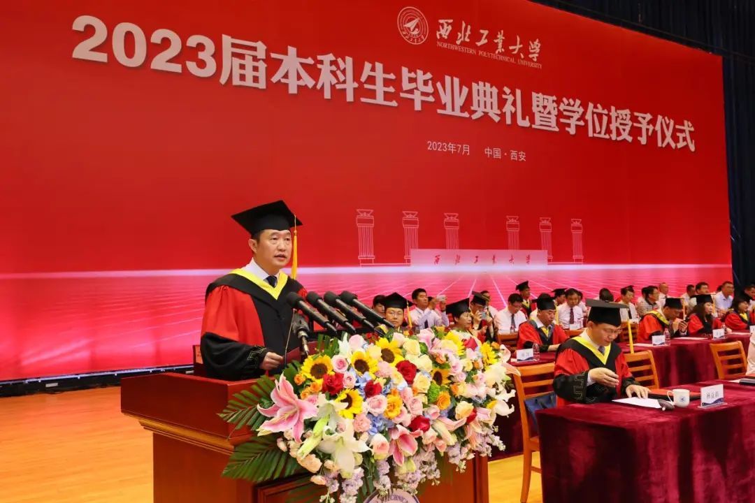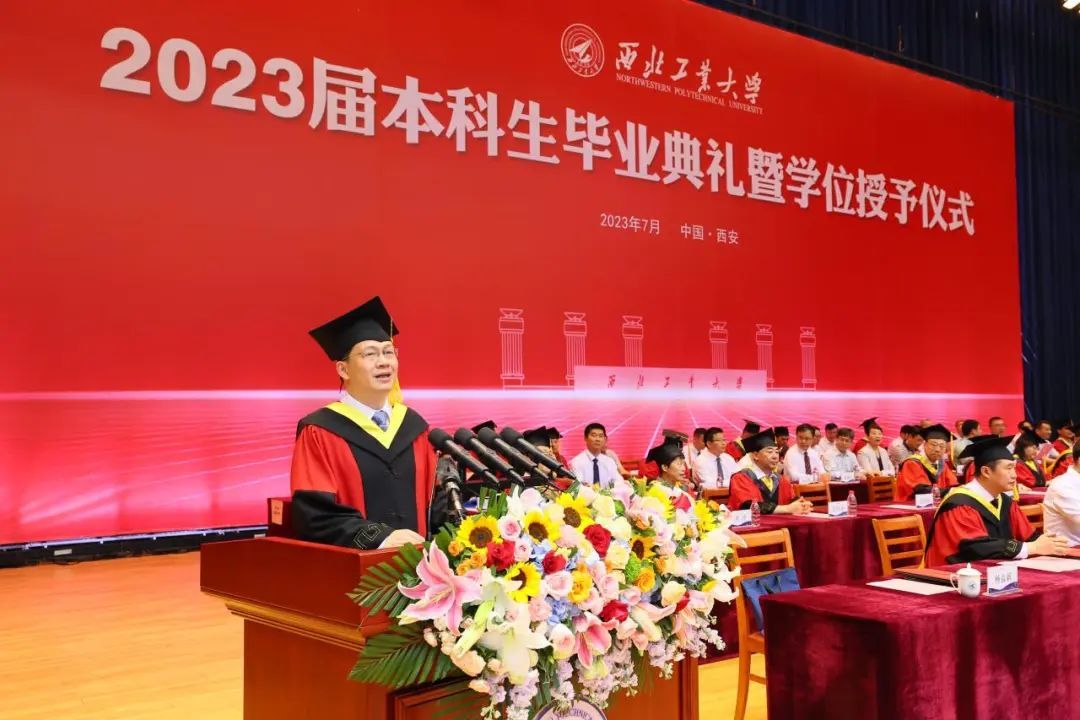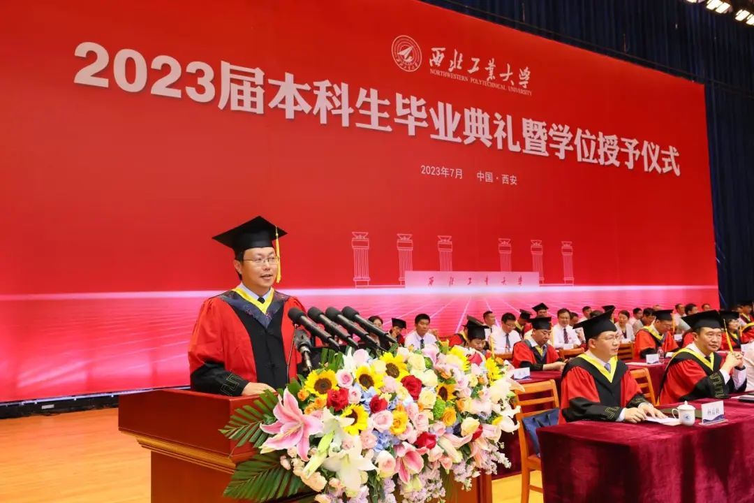 他表示,这四年是同学们见证祖国繁荣昌盛的四年,大家亲历了国家许多激动人心的历史时刻,当代青年身处其中、积极参与、勇挑重担、冲锋在前,充分展现了勇气和担当;这四年是同学们见证学校团结奋进的四年,学校奋力推进内涵式高质量发展,综合实力稳步提升,这之中同学们不仅是学校建设发展的见证者,也是参与者和贡献者;这四年也是同学们绽放自身青春活力的四年,同学们潜心学习、矢志创新、施展才干、讲好工大故事,在西工大不断收获成长、追求卓越,他由衷地为同学们感到骄傲。