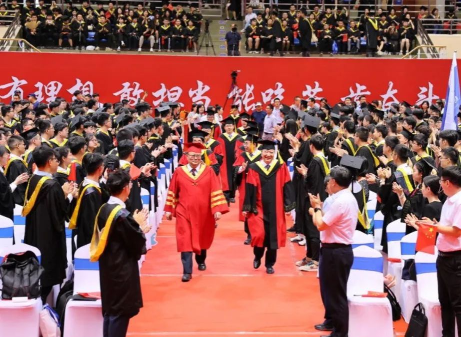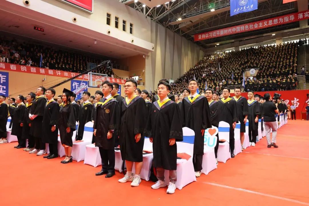 庄严的国歌奏响,在师生响亮的齐唱声中,毕业典礼正式拉开帷幕。