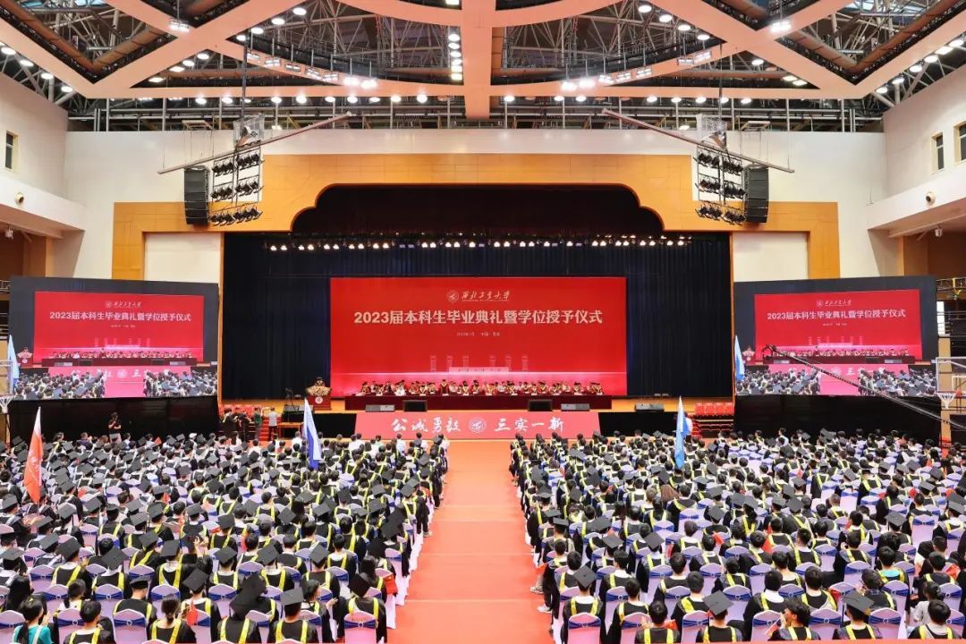 西工大新闻网7月7日电(文字 潘子祺 张文静 摄影 郭友军 卢迪 王乐宇)7月6日上午,taptap点点体育2023届本科生毕业典礼暨学位授予仪式在长安校区翱翔体育馆隆重举行。4592名本科生圆满完成学业,被授予学士学位(其中普通高等教育学士学位3635人,成人高等教育学士学位957人),挥别母校,自此向崭新的未来启程。