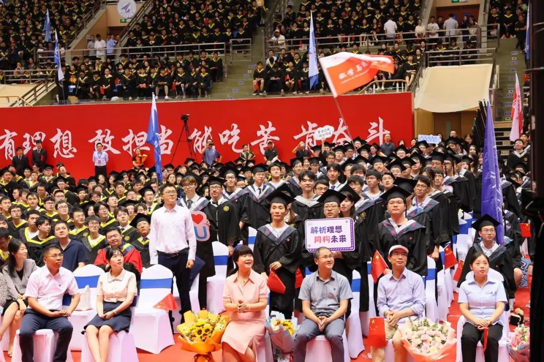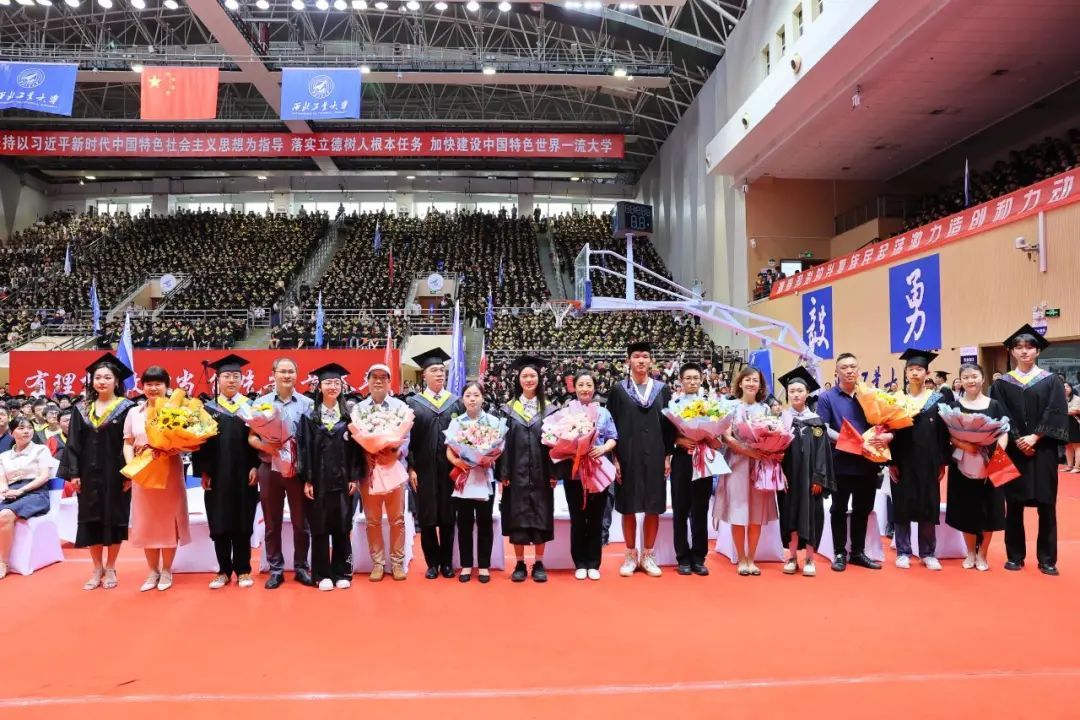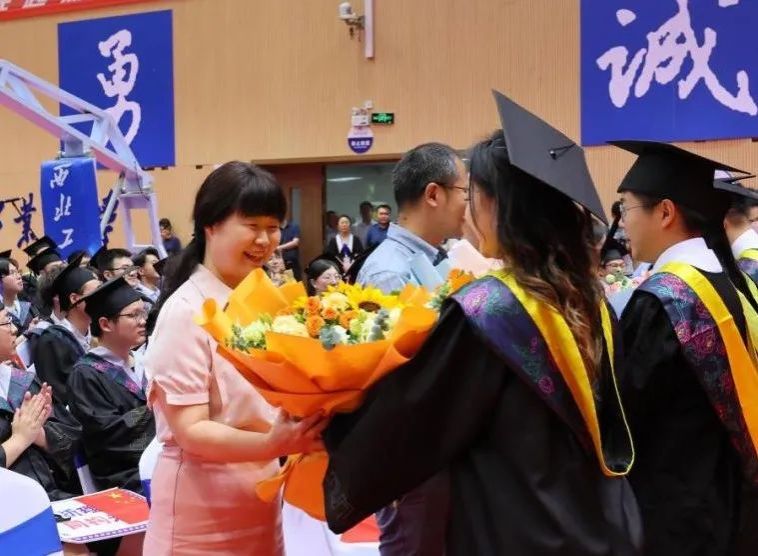 传播知识、传播思想、传播真理,塑造灵魂、塑造生命、塑造新人。四年间,恩师用谆谆教诲指引我们前进的方向,呵护我们向阳生长。教师代表力学与土木建筑学院张娟老师、辅导员代表动力与能源学院徐福厚老师、班主任代表电子信息学院何建华老师、餐厅员工代表王荣荣老师、学生公寓管理员代表陈福香老师、保卫处代表李文博老师、校医院医生代表盛秋老师、校车驾驶员代表李玉平老师、家长代表彭鹏女士等来到典礼现场,毕业生向他们献上鲜花,感谢师长、家人们的辛勤付出和深切关怀。