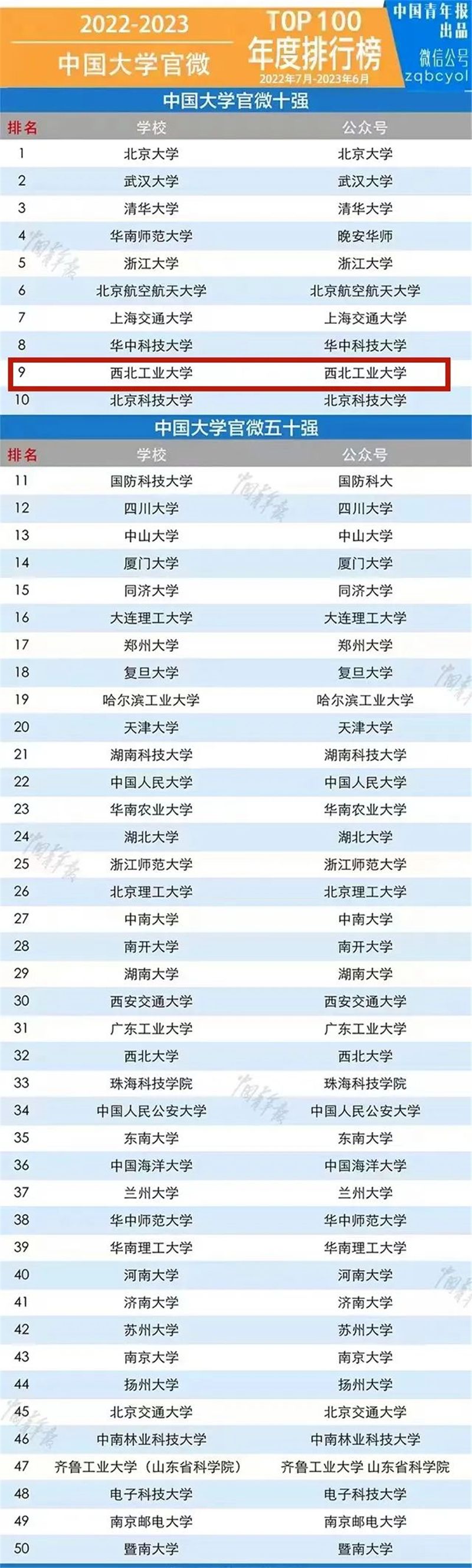 为了反映全国高校官微影响力,中国青年报从2014年开始,依据高校微信公众号推送文章的传播度、覆盖度及公众号的成熟度和影响力,每周推出全国高校微信公号影响力排行榜及相应的文章阅读量排行榜,并在此基础上评选出中国大学官微年度排行榜。本次榜单截取时间段为2022年7月至2023年6月。