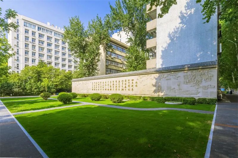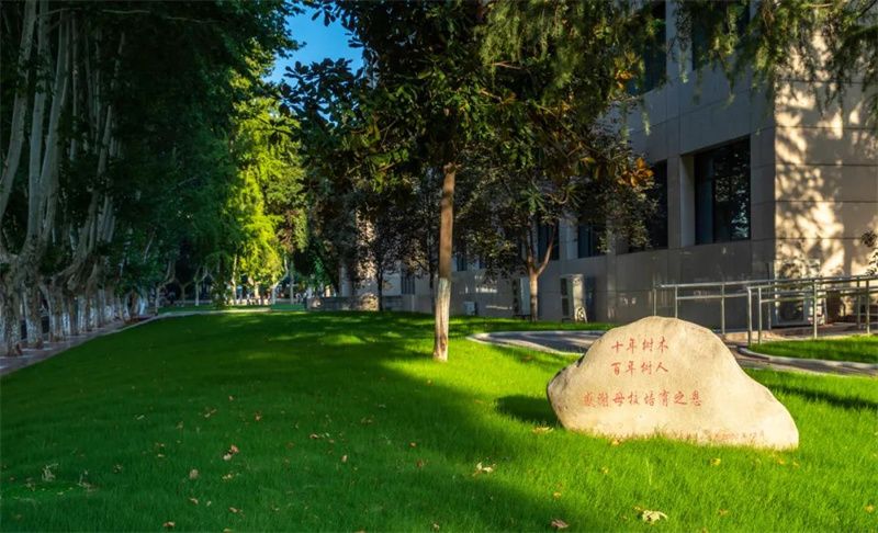 校歌墙前新种了冬青等低矮灌木,重新修缮的大理石花坛简约大气,与桃李园、诚字楼遥相呼应,提升了教学科研区人文氛围,展现了学校深厚的历史底蕴。
