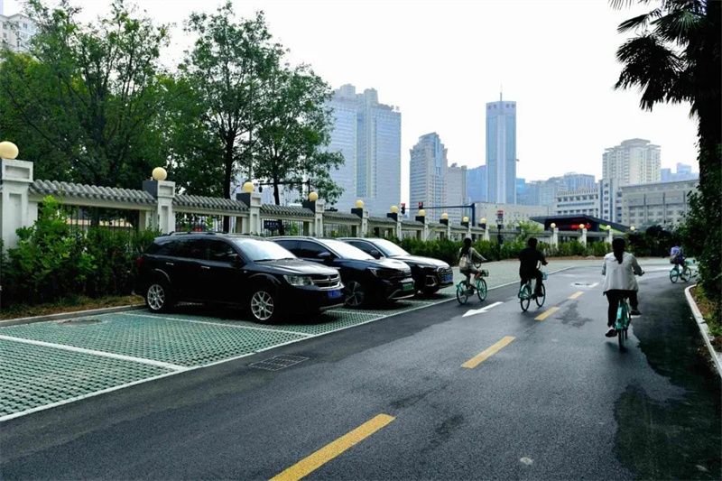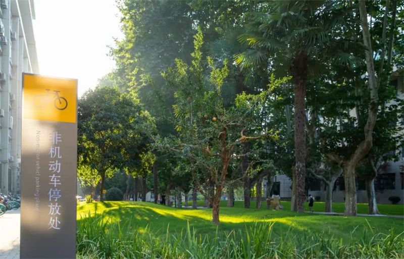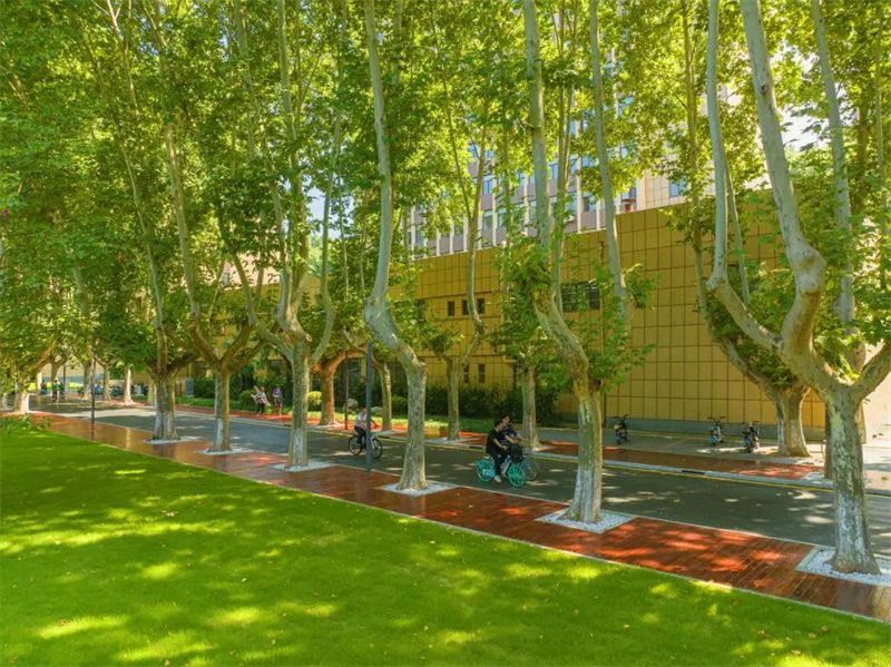 梧桐大道两侧还专门规划有非机动车停放处,方便师生的同时,校园也更整洁。
