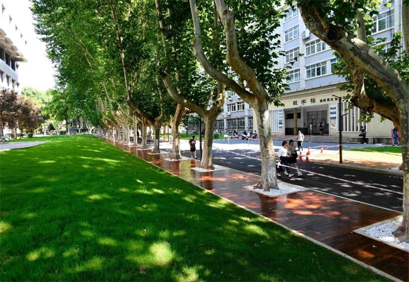 现如今,茵茵绿草上铺设着木制栈道,新添的座椅提供了更为舒适的休闲空间,学习科研之余,漫步其间,在满眼苍翠中找寻灵感,在鸟语花香中畅聊未来。