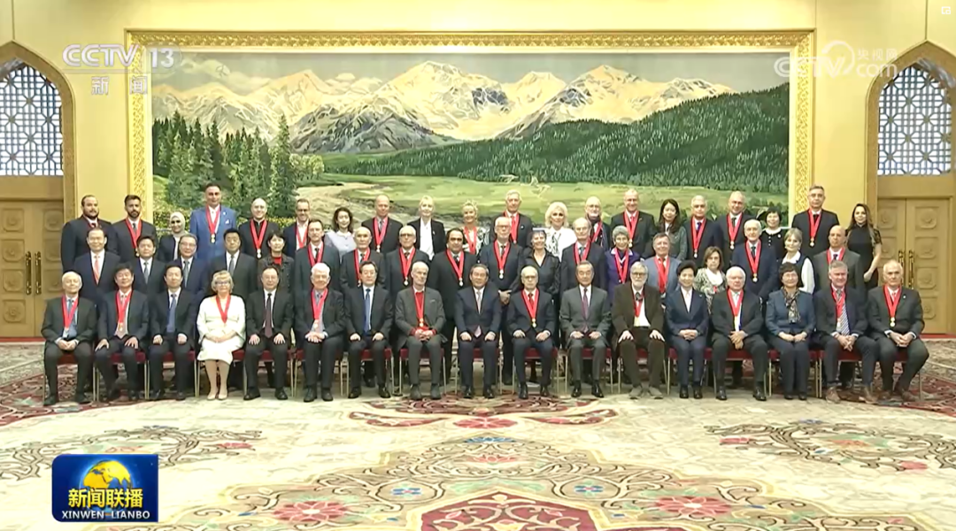 帕维尔·诺伊茨尔教授(第三排左八)在人民大会堂会见现场(央视新闻视频截图)