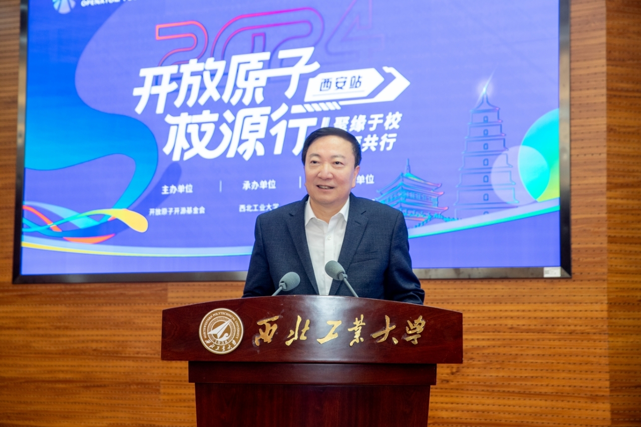 李言荣代表学校向本次活动的举办表示祝贺,向出席活动的各位领导、专家和师生们表示欢迎。他说,高校是培养开源人才,推动开源技术创新、弘扬开源精神的重要力量。他简要介绍了学校特色后说,西工大是国内较早开展软件技术和软件工程研究的高校,学校聚焦开源战略,着力为开源人才培养、技术创新提供有力支撑。未来,学校将携手推广开源文化、推动开源实践和繁荣开源生态,为科技自立自强作出贡献。