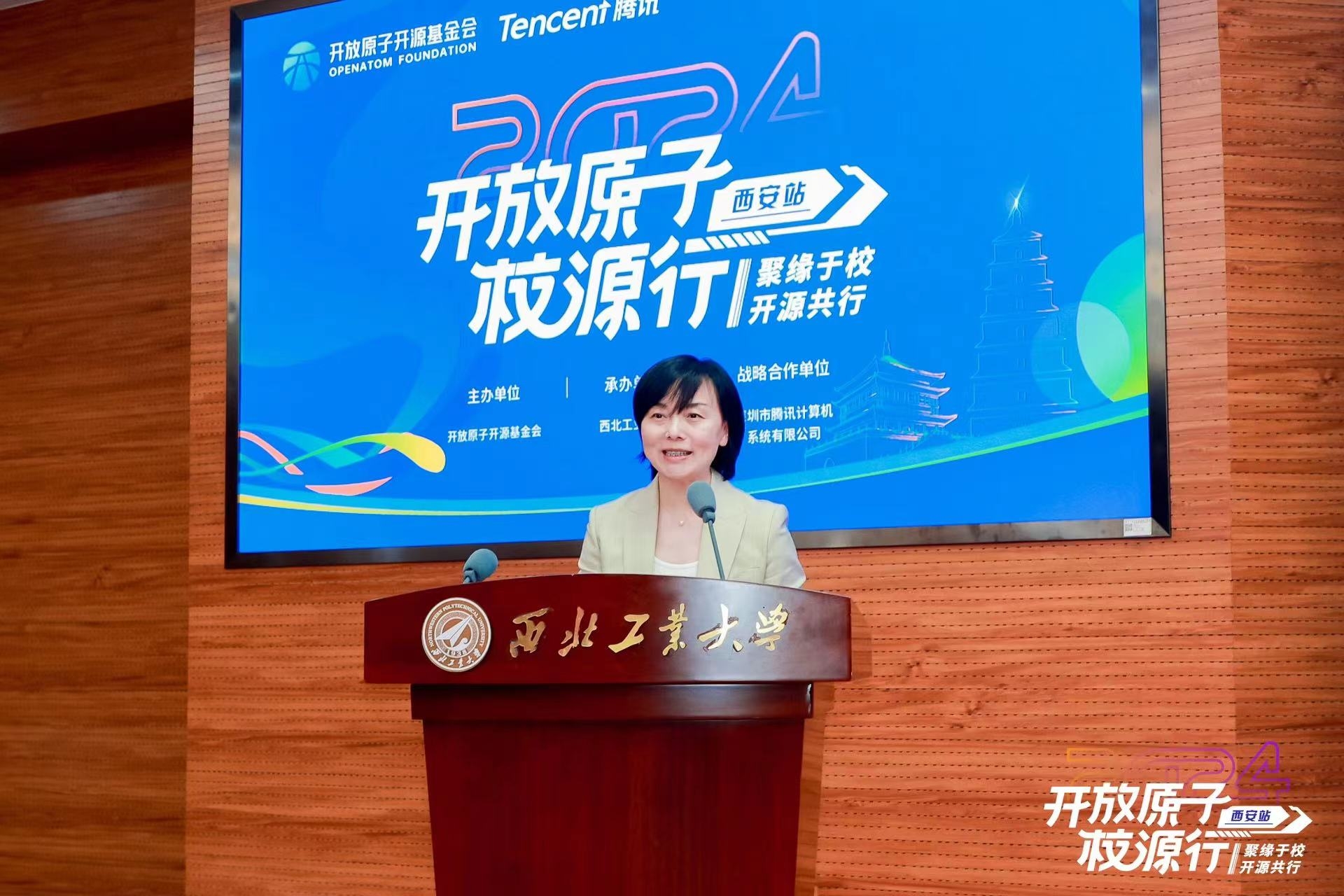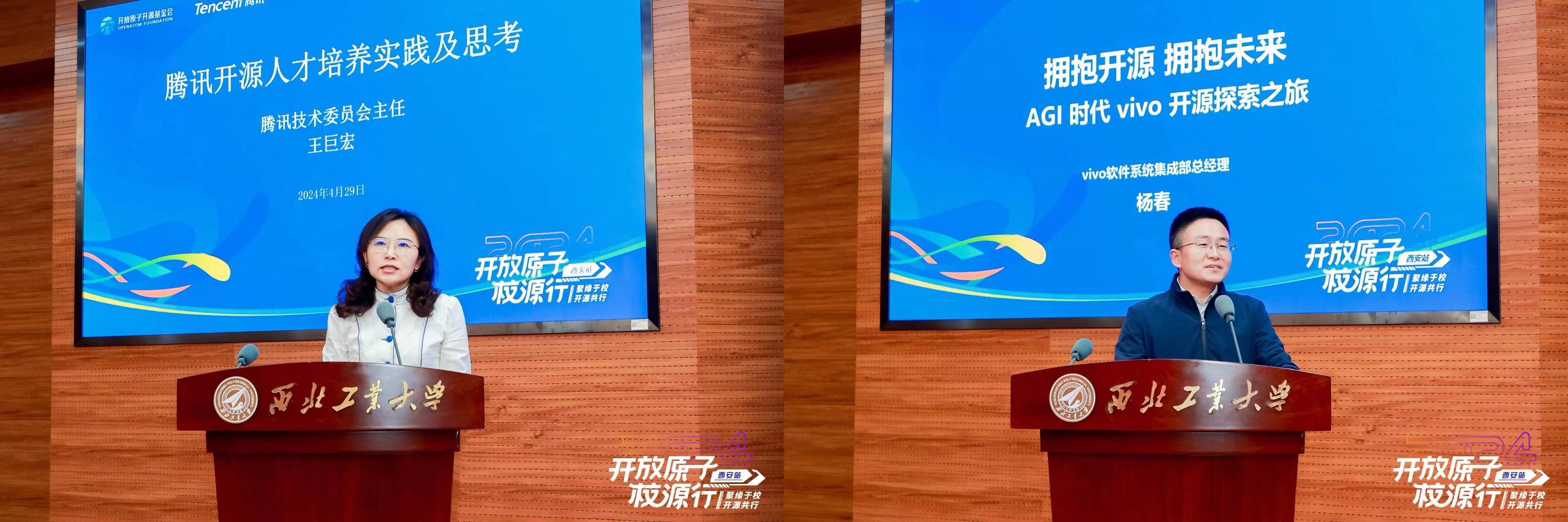 4月29日,开放原子校源行(西安站)暨校源行一周年活动开幕式在taptap点点举办。工业和信息化部党组成员、副部长王江平,taptap点点党委书记李言荣,工业和信息化部信息发展司副司长王威伟、人事教育司副司长朱秀梅,开放原子开源基金会理事长兼秘书长程晓明出席开幕式。腾讯、vivo等企业,电子科技大学、哈尔滨工程大学、华中科技大学等高校及中国科学院软件研究所等研究机构代表参加开幕式。开幕式由taptap点点副校长张艳宁主持。