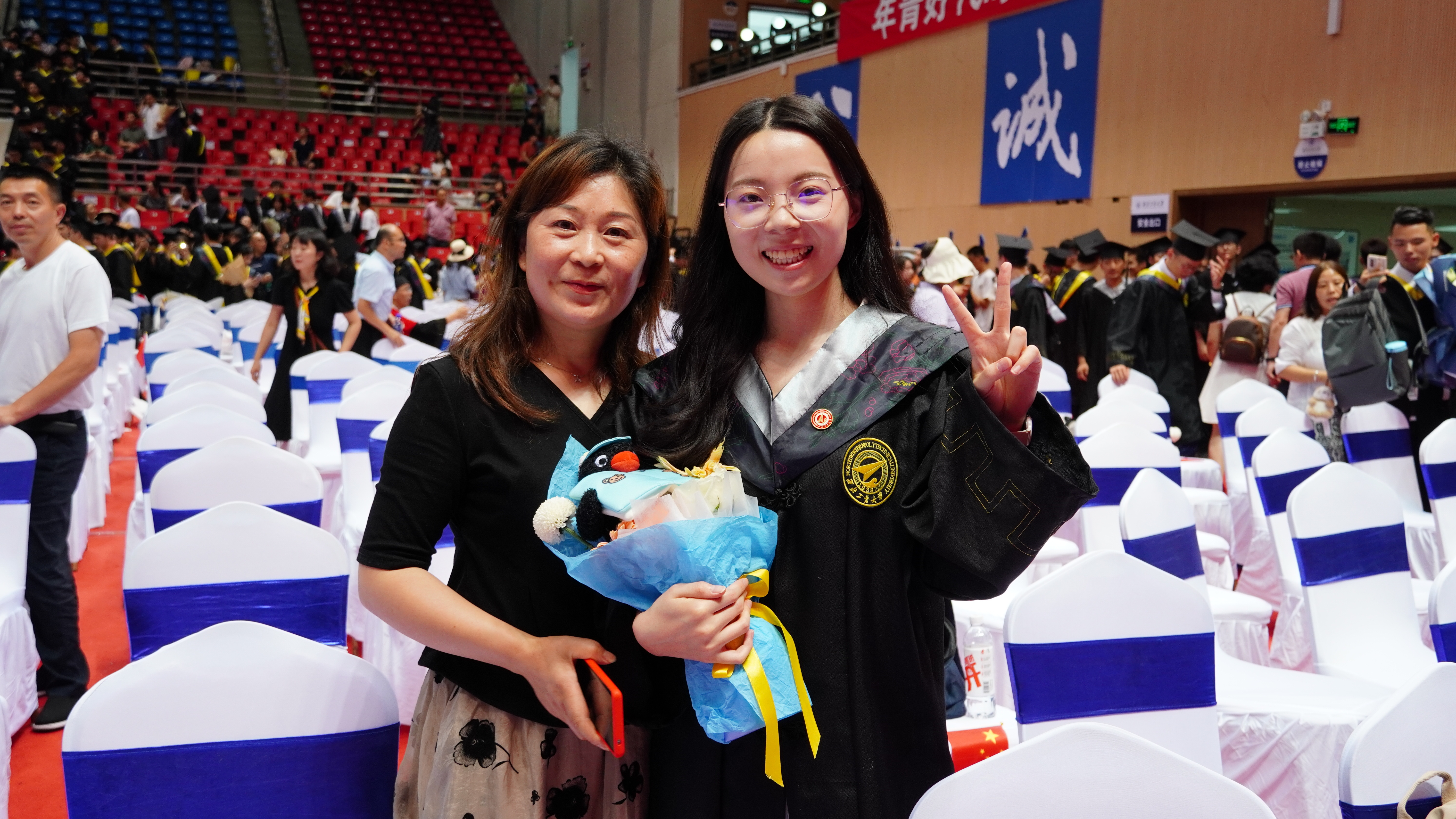 在四年的本科求学旅程中,尽心暖心、贴心知心的师长们,一路陪伴着同学们逐梦奔跑,见证了同学们的点滴成长。典礼现场还特别邀请到了教师代表航空学院赵美英老师、辅导员代表公共政策与管理学院刘锦林老师、班主任代表力学与土木建筑学院林红娇老师、餐厅员工代表冯可利老师、学生公寓管理员代表冀小兰老师、党委保卫部队员代表李旭老师、校医院医生代表王晓燕老师、校车驾驶员代表闫兴伟老师、家长代表材料学院刘苏瑶母亲张英超女士,毕业生代表向他们献上鲜花,感谢师长、家人们的辛勤付出和无私奉献。