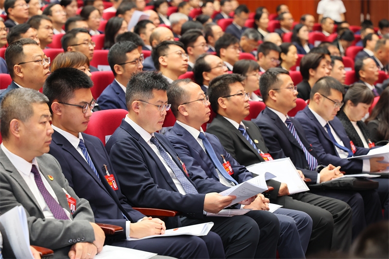 聆听李言荣同志所作的报告,大家边听边记,不时热烈鼓掌。