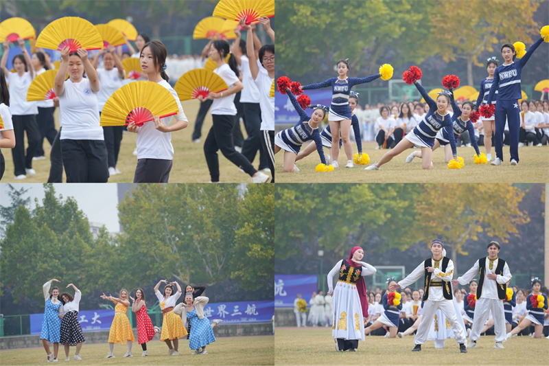 校健美操队、国际教育学院学生带来了《舞韵华章》,他们全情投入、身着盛装、亦操亦舞、热情奔放。