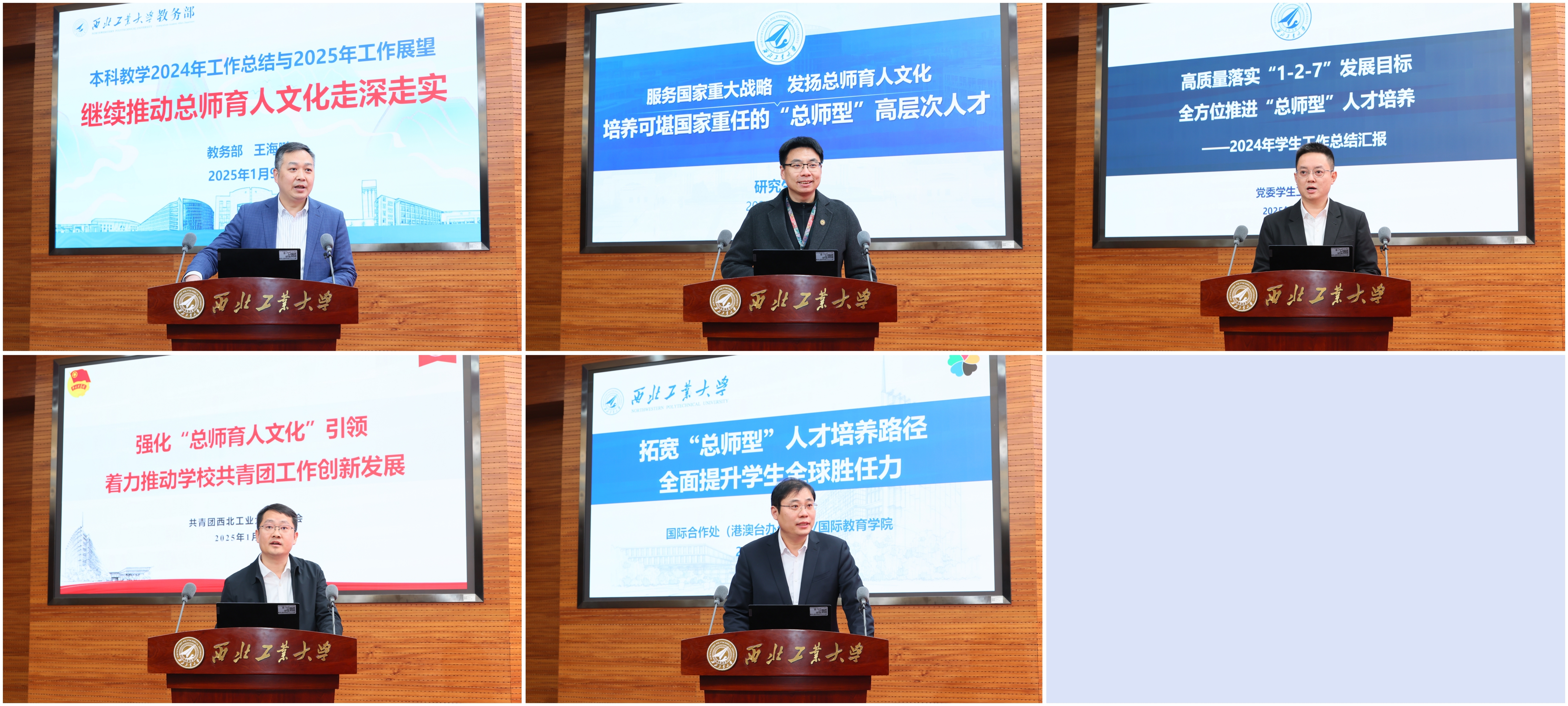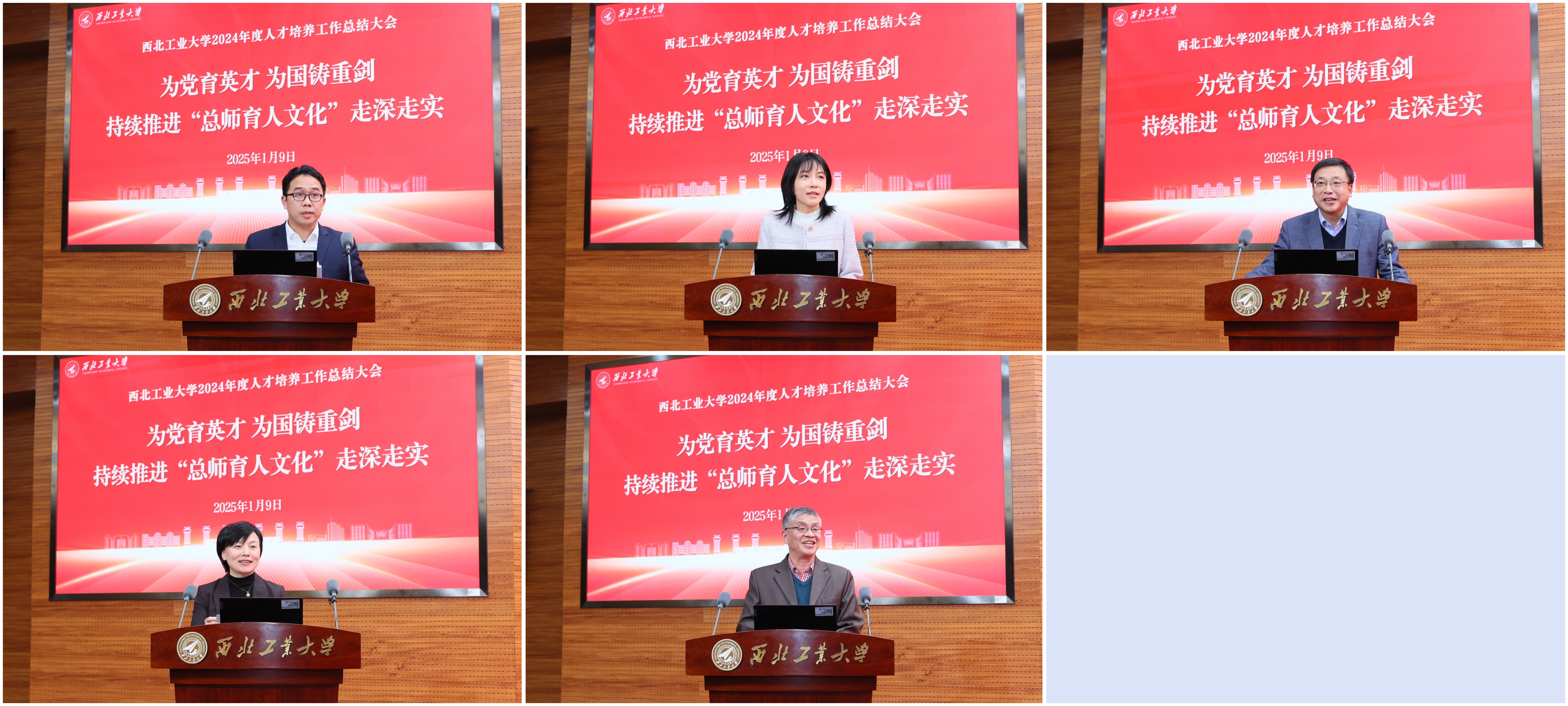 宋保维指出,人才培养是学校的中心工作,五个职能部门、五个学院和一位教师代表对学校2024年的工作成效、做法和体会做了很好的交流,更加坚定了我们做好2025年人才培养工作的信心。他用了四个“显著提升”总结了2024年人才培养工作:招生就业质量显著提升,优质教育资源显著提升,国际化教育水平显著提升,学生综合能力显著提升。他从做好人才培养工作的“加减乘除”四个方面提出了要求:一是做好人才培养的“加法”,要继续加强思想政治教育,强化辅导员队伍建设,提升班主任和学生干部队伍的能力,提高思政课教师的教学水平,让更多高层次人才走进思政课堂,充分挖掘校内、陕西省和国防军工大院大所的思政教育资源;要加强教学资源建设,重视“总师型”青年教师的培养,注重AI赋能教育教学,要加强科研反哺人才培养,强化学生的科研训练。二是做好人才培养的“减法”,要继续实施大类招生,打破学科、专业间的壁垒,强化通识教育培养;要强化学科专业动态调整,加速推进学科专业“撤、并、转”;要打破资源常规配置模式,服务顶尖人才培养,加大指标投入和资源政策倾斜,建好强基班、拔尖学生培养基地和特色班,紧抓新领域新方向积极争取扩大博士生招生规模。三是做好人才培养的“乘法”,要加强交叉学科人才培养,构建跨学科的课程体系、教学大纲、教学内容和教学平台;要抓好“三大赛”典型引领,提升学生创新能力,强化有组织的推动,超前谋划、提前布局,多部门协同,完善激励政策,真正使学生在创新创业和竞赛活动中涵养“总师型”人才的基本素质;要构建多元化评价体系,提升基础课程教学水平,要制定专门的激励政策,在数学、外语等基础课程教学水平上进一步加大力度,有序扩大本研贯通培养的规模。四是做好人才培养的“除法”,要注重校内政策联动,强化部门和学院间的沟通协调,教务部、研究生院要做好“链主”,各单位做好协同配合;要注重校际沟通合作,搭建国际交流平台的同时,也要重视和国内名校的交流合作;要注重校企协同育人,促进产学研深度融合。