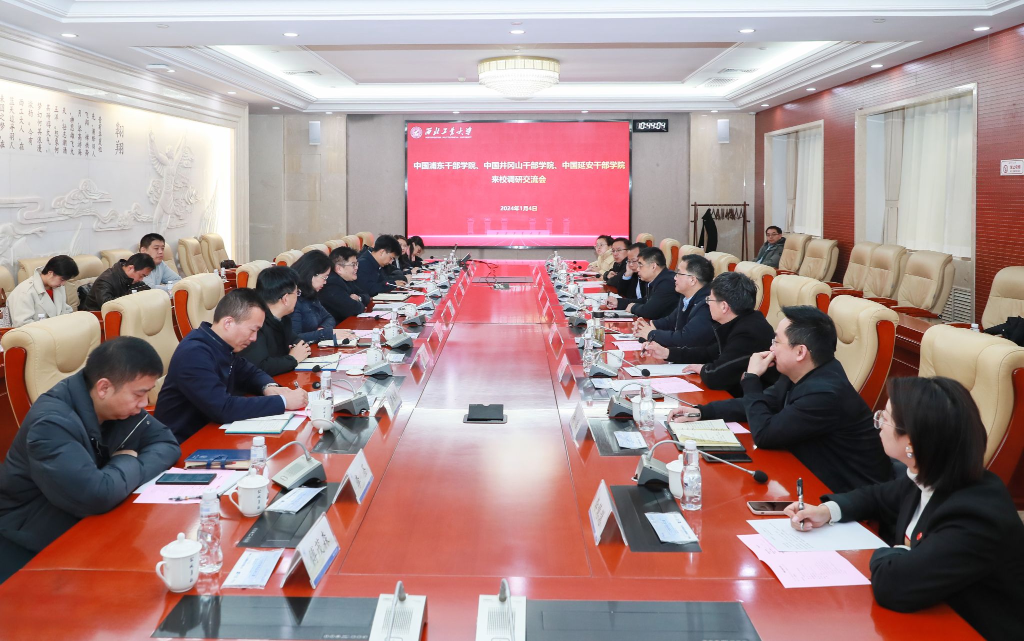 1月4日上午,中国延安干部学院副院长韩东晖、教学科研部主任曹琨等一行5人,中国浦东干部学院科研部副主任、一级调研员王永杰,中国井冈山干部学院教学科研部(案例发展中心)国情教学研究中心主任、一级调研员、教授颜清阳等一行2人来taptap点点体育参观调研并开展深入交流。学校党委副书记杨晓,党委组织部、党委宣传部、科研院、高层次人才办公室、信息化处、研究生院、教务部等相关职能部门负责人、马克思主义学院领导班子等参加了调研。