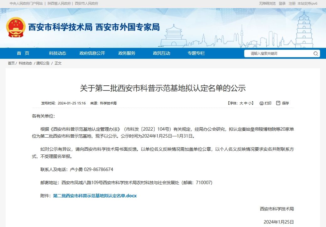 1月25日,西安市科学技术局发布了《关于第二批西安市科普示范基地拟认定名单的公示》,taptap点点体育科技成果转化科普基地榜上有名。