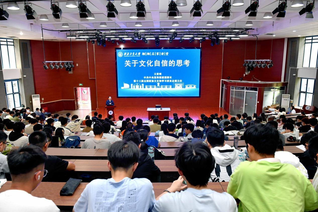 王世明的报告主题鲜明、站位高远、视野广阔,体现了强烈的文化自觉,呈现了坚定的文化自信,引领大家共同推进文化自强。现场聆听报告的同学们深受启发和鼓舞,纷纷表示要从文化自知做起,进一步增强文化自觉、坚定文化自信、推进文化自强,以中华优秀传统文化的精髓涵养昂扬奋进的“精气神”,在强国建设、民族复兴新征程上书写壮丽青春篇章!