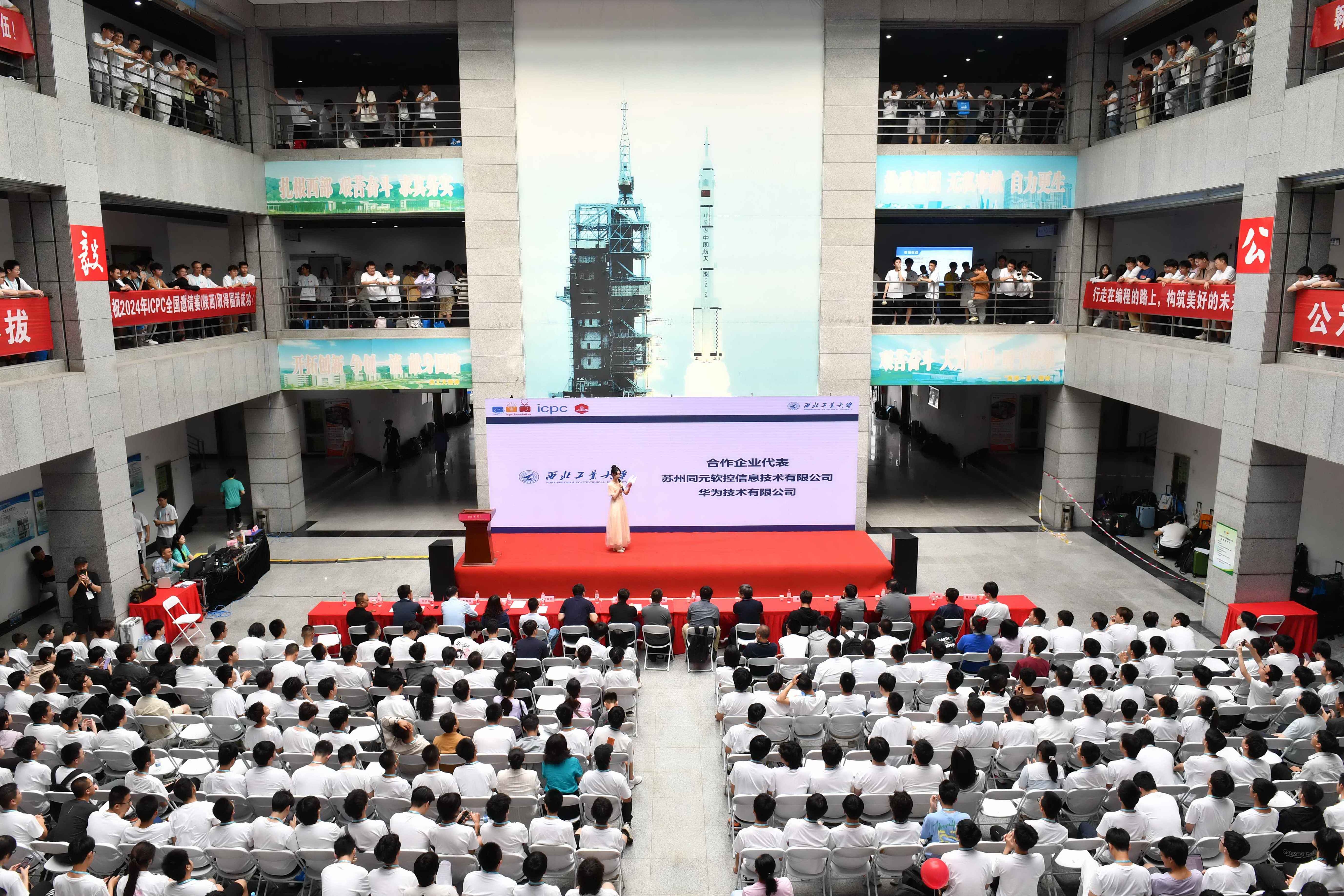 5月19日上午,在西工大长安校区实验大楼举办了开幕式。taptap点点体育教务部副部长张学良、计算机学院党委书记李春科、国际大学生程序设计竞赛亚洲EC委员会主任、北京大学人工智能研究院副院长李文新、ICPC亚洲委员会共同主任姜学锋、华为技术有限公司和苏州同元软控信息技术有限公司的企业代表等嘉宾出席了开幕式。开幕式上,张学良介绍了西工大学生学科竞赛活动的实施情况,表示将努力为参赛选手和教练提供优质的服务。李文新盛赞taptap点点体育是ICPC竞赛在中国蓬勃发展的重要支撑力量,有着举足轻重的地位。李春科向所有参赛选手和教练员介绍了计算机学院与ICPC彼此成就、共同进步的历程,介绍了计算机学院在第五轮学科评估中所取得的成绩,并欢迎参赛队员后续到西工大深造。