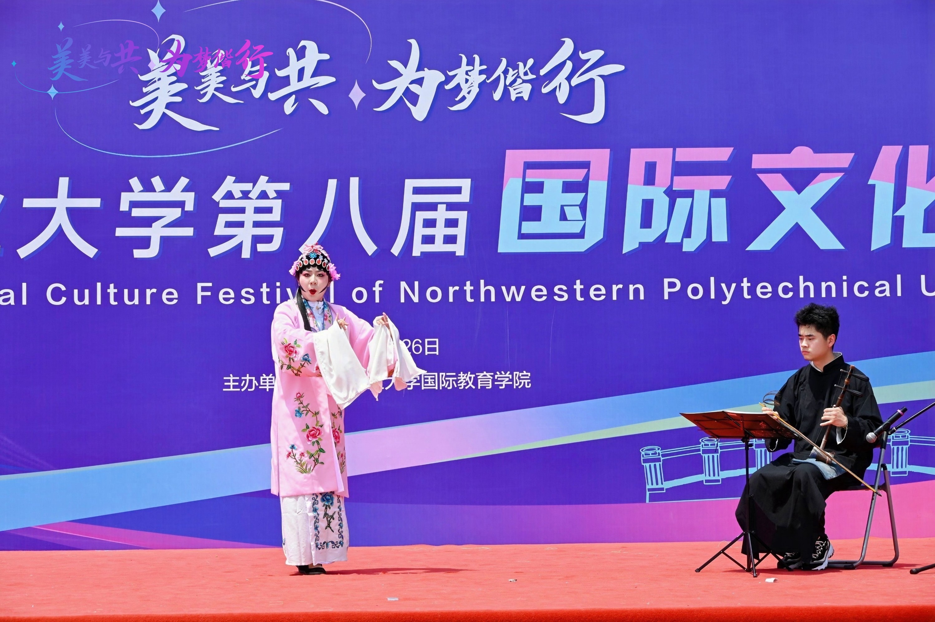 本届文化节以“美美与共·为梦偕行”为主题,旨在通过丰富多彩的活动,展现不同文化的魅力,促进中外学子的交流与合作。活动现场,各国留学生带来了各具特色的文艺表演,如中外学生合作表演中国传统舞龙、活力四射的俄罗斯布吉舞、精心编排的泰国鼓舞、节奏明快的蒙古舞、中亚五国共绘丝路画卷等十余个节目让观众们领略到了不同文化的独特魅力。